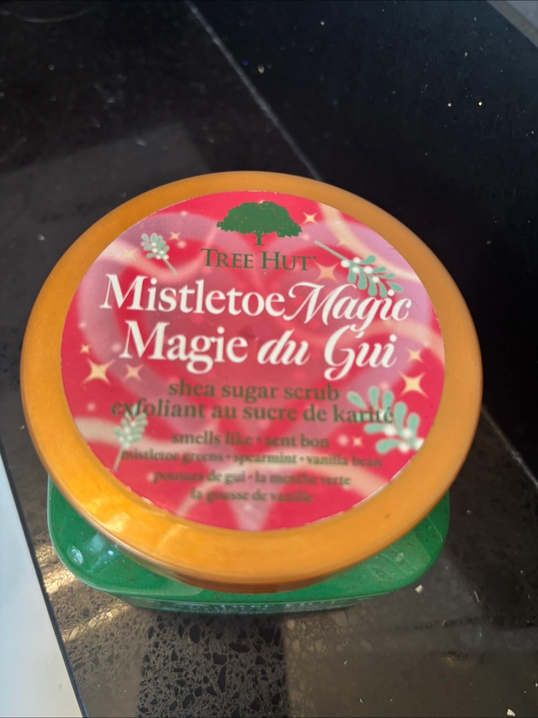 This Mistletoe Magic Shea Sugar Scrub from Tree Hut is a festive holiday body scrub. It's a shea sugar scrub exfoliant that smells like mistletoe, spearmint, and vanilla bean. 510g jar.