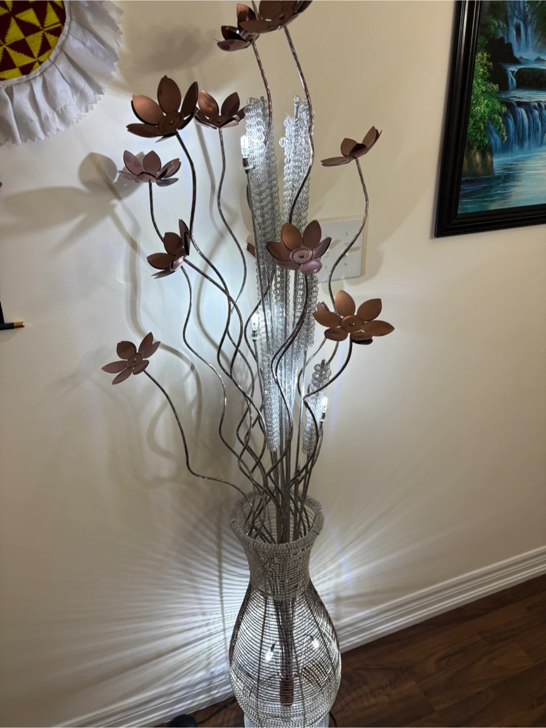 Selling a unique floral floor lamp! It features a vase-shaped base with decorative flowers and lights. It would look great in any room!