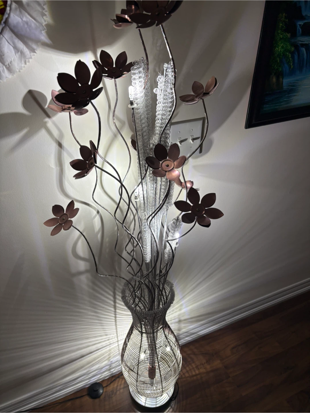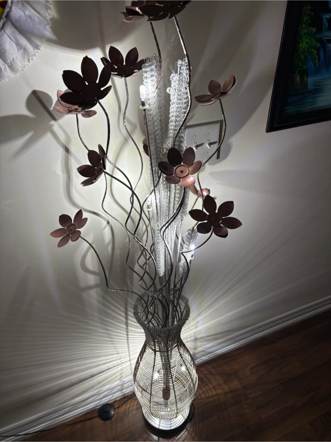 Selling a unique floral floor lamp! It features a vase-shaped base with decorative flowers and lights. It would look great in any room!