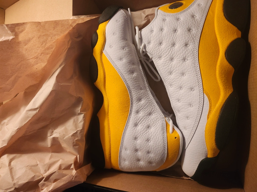 Men's Air Jordan 13 Retro basketball shoes. Size 11.5 white and yellow colourway. New in box.
