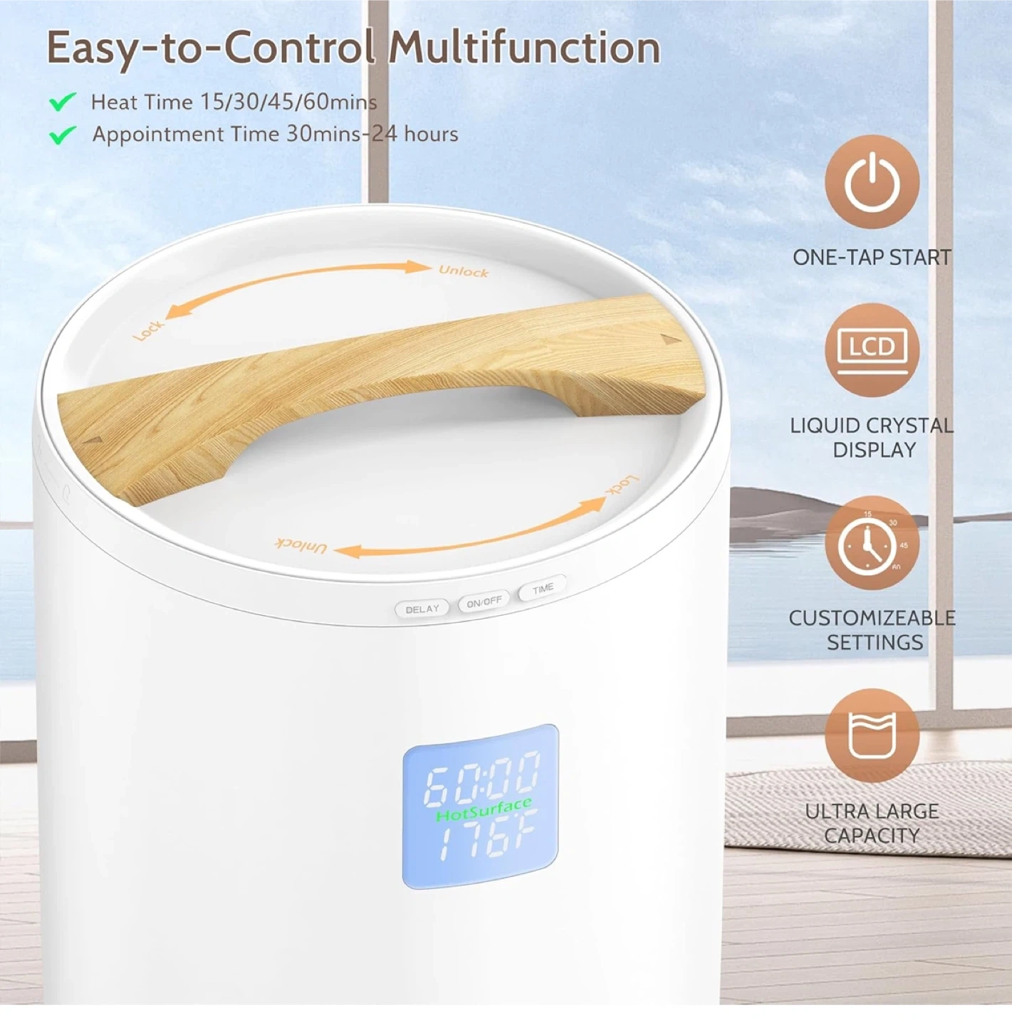 Visible Heating Temperature & Time: The LCD screen will display the real time temperature and the remaining heating time as you set. The heating process becomes more intuitively and controllable.