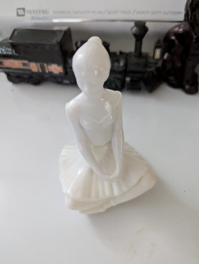 109AVON vintage milk glass ballerina perfume bottle. Small collectible figurine. Perfect for a dresser or vanity.