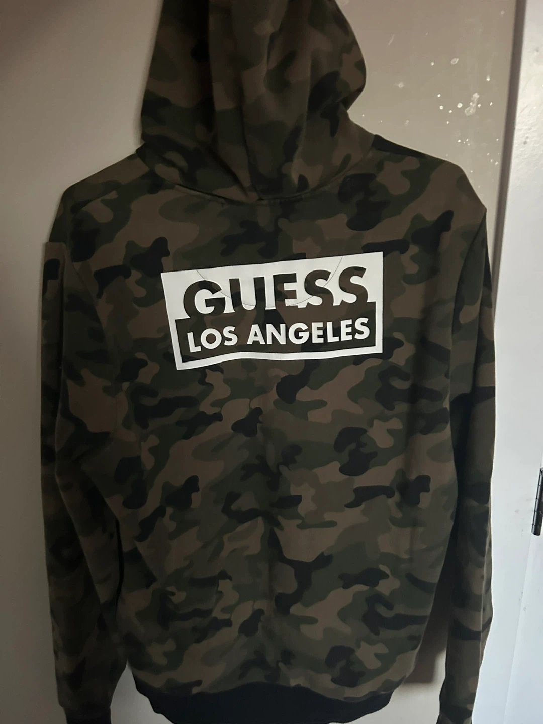 Selling a Guess camo hoodie! It features the Guess logo on the front and back. The hoodie is perfect for adding a stylish, casual layer to your outfit. Feel free to reach out if you have any questions!