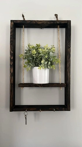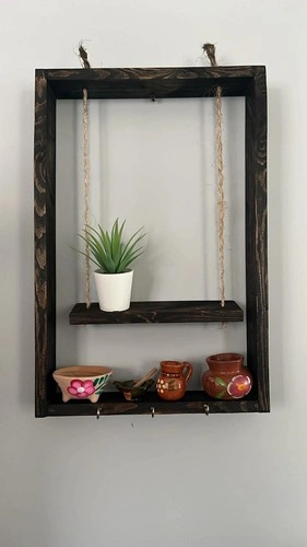 Add a warm and rustic touch to your home with this handmade wooden wall shelf. Designed with natural rope accents and sturdy hooks at the bottom, it’s perfect for displaying small decor, plants, keys, or collectibles. Solid wood frame. Rustic farmhouse design. Hanging rope detail. Bottom hooks for keys or accessories. Perfect for entryway, living room, bedroom or kitchen. Handcrafted with care — stylish and functional.