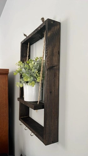 Add a warm and rustic touch to your home with this handmade wooden wall shelf. Designed with natural rope accents and sturdy hooks at the bottom, it’s perfect for displaying small decor, plants, keys, or collectibles. Solid wood frame. Rustic farmhouse design. Hanging rope detail. Bottom hooks for keys or accessories. Perfect for entryway, living room, bedroom or kitchen. Handcrafted with care — stylish and functional.