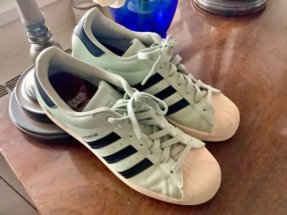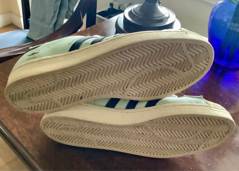 These Adidas Superstar 50th Anniversary x Star Wars - The Child sneakers in size 10 feature a unique green color inspired by the Star Wars theme. This leather shoe from the Adidas Superstar product line combines athletic style with iconic branding, making it a must-have for fans of both Adidas and Star Wars. Released in 2020, this sneaker celebrates the 50th anniversary of the Adidas Superstar model with a special design that pays homage to the popular franchise. Men’s size 10, Euro 44 and in mint condition and ready to be added to your sneaker collection.