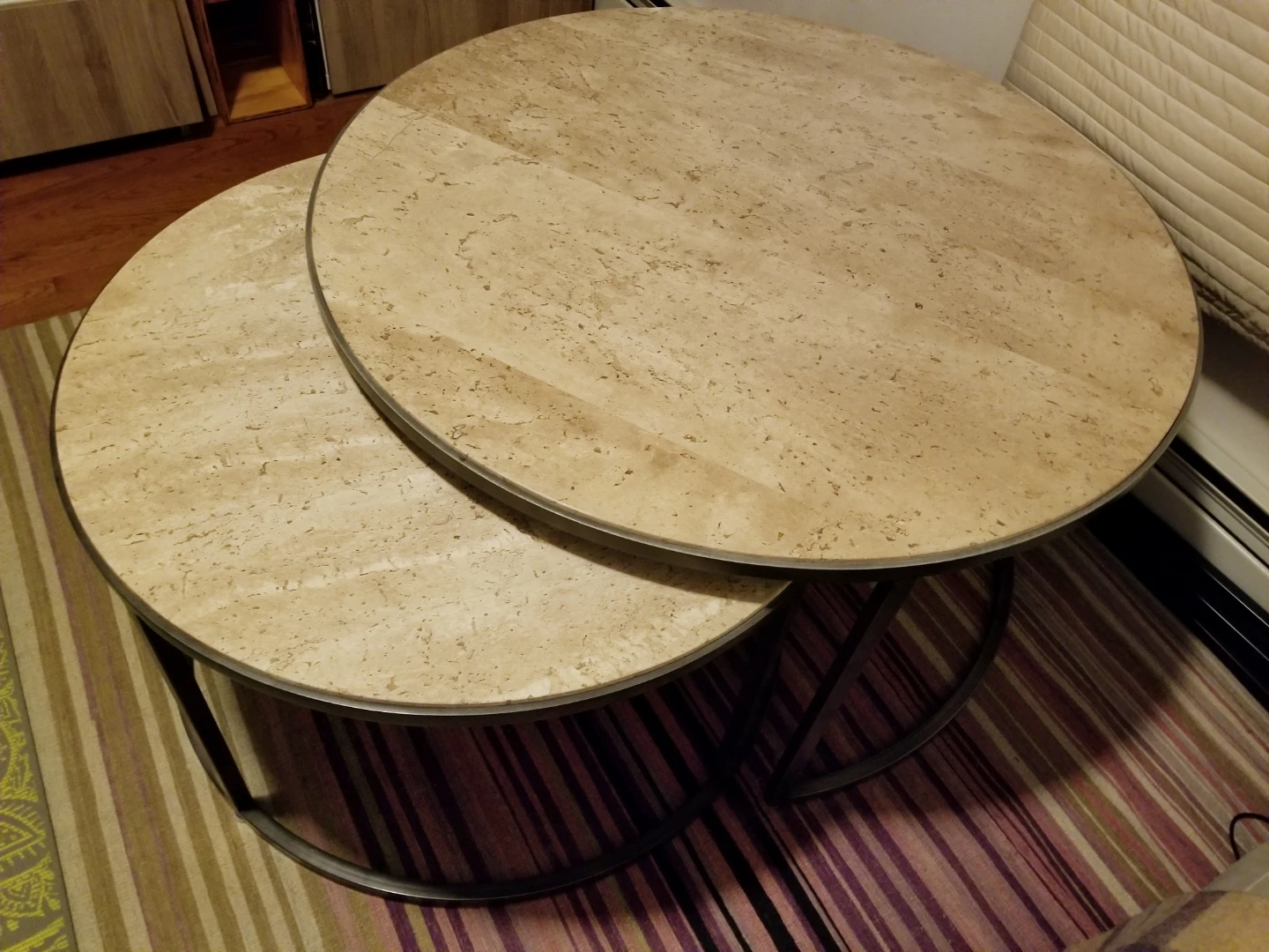 Stone Round Nesting Coffee Table w/ Side Table