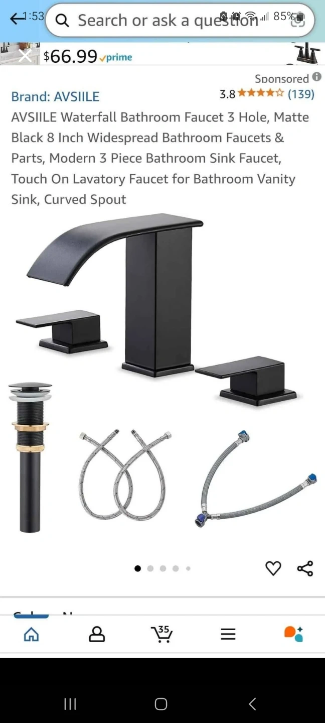 68Selling a new AVSIILE waterfall bathroom faucet in matte black! It comes with all the components and is still in its original box. The faucet features a curved spout design. Originally bought for $131.12