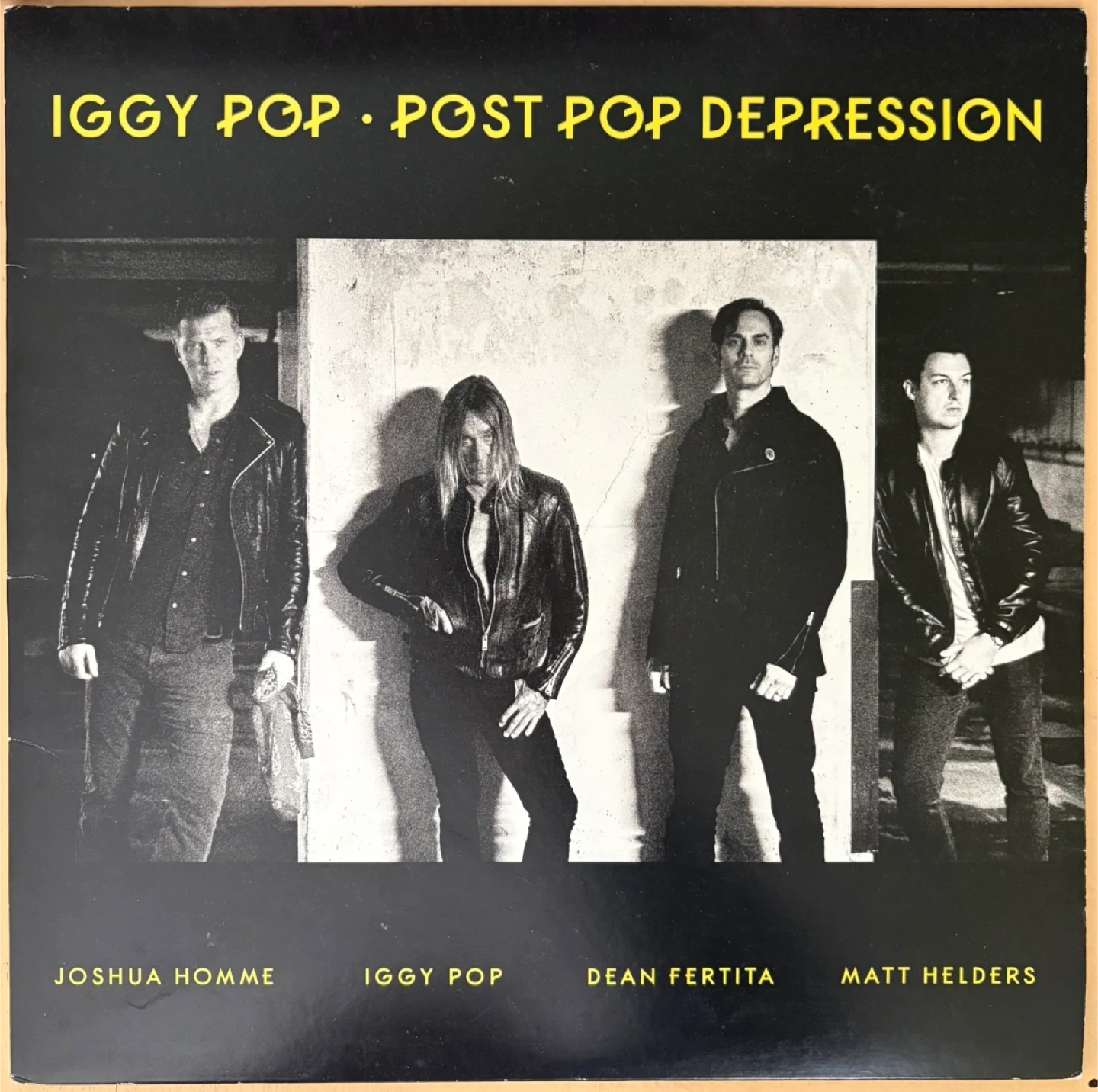 Iggy Pop's Post Pop Depression vinyl record. Produced by Joshua Homme. Features tracks like 'Break Into Your Heart' and 'Chocolate Drops'. Made in the U.S.A.