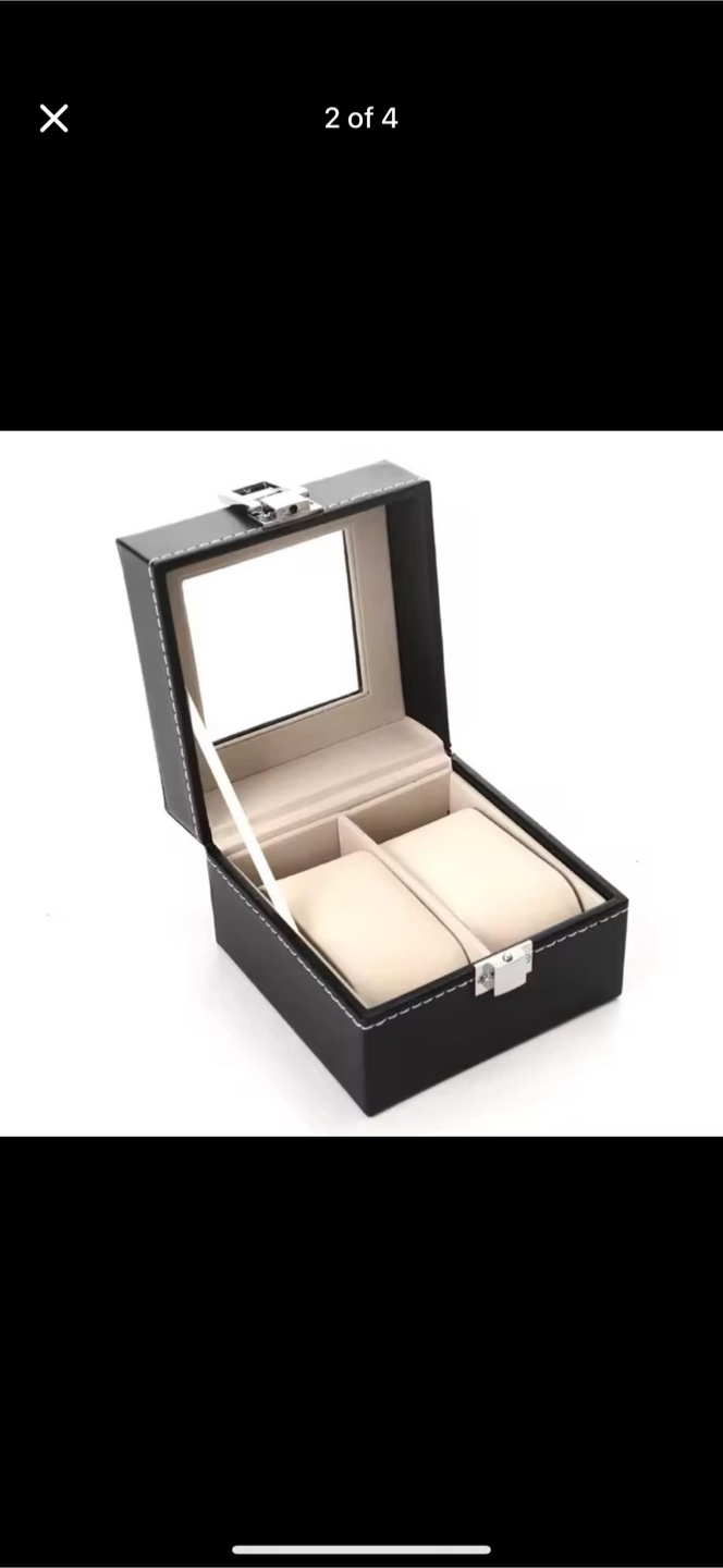 Compact 2-slot PU leather case (watch storage box). Perfect for daily use or travel, with a soft interior and sleek black design