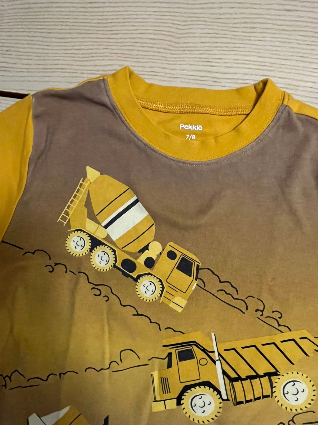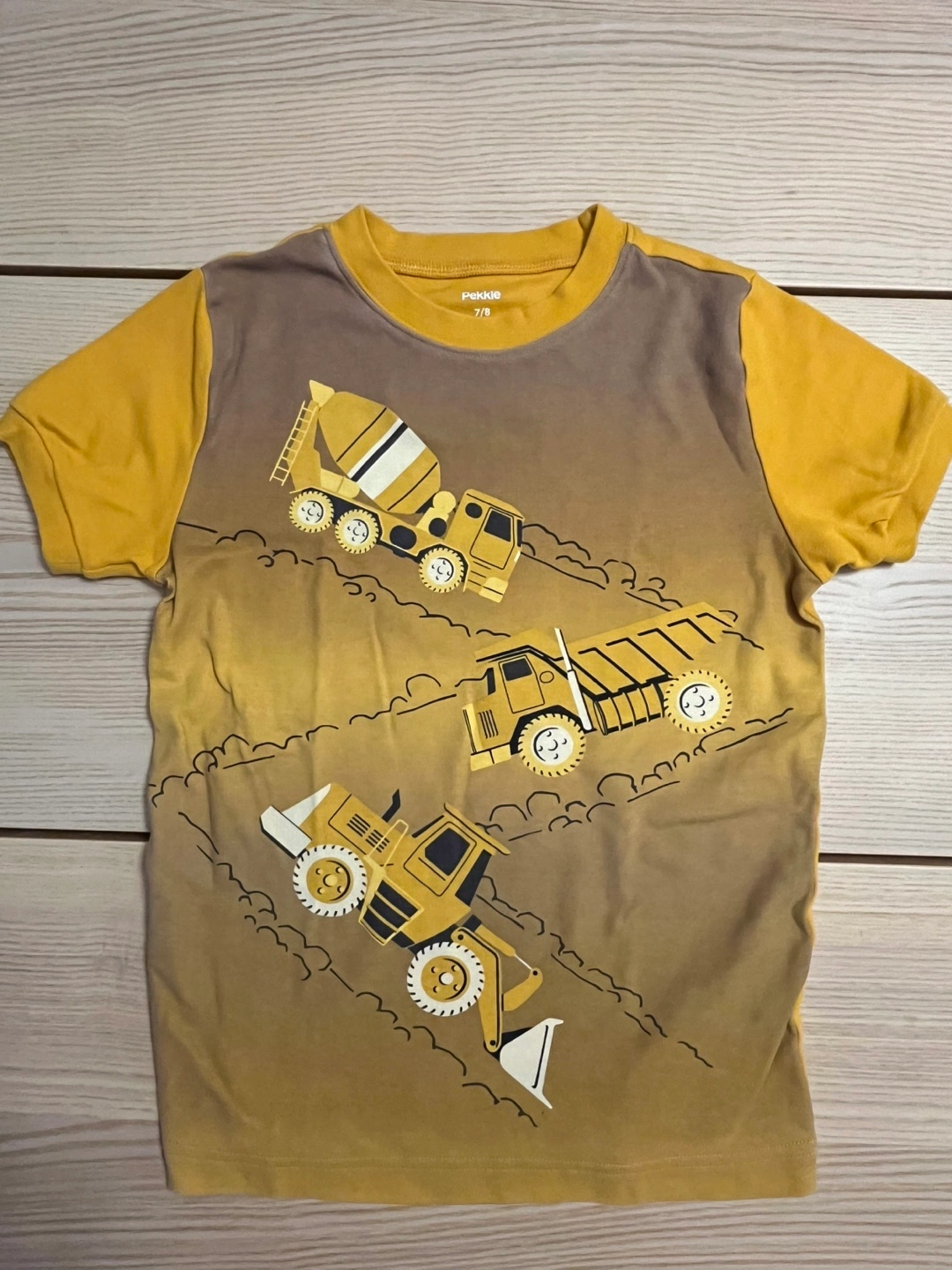 This Pekklo shirt is in great condition and features a fun truck print! It's a size 7/8, perfect for your little one who loves construction vehicles