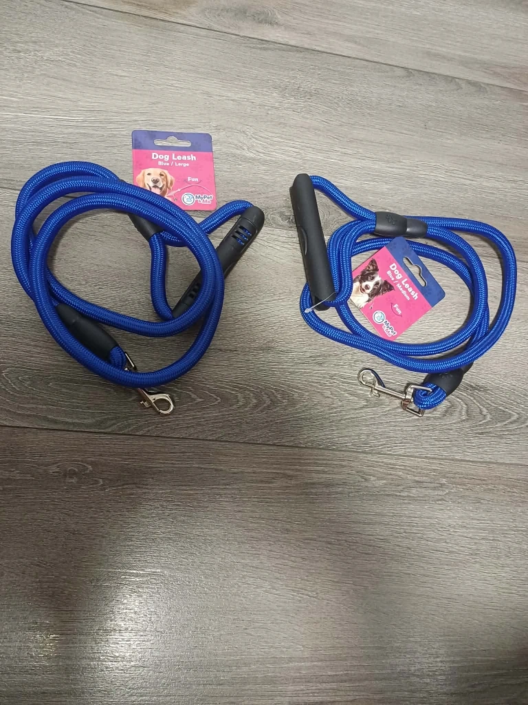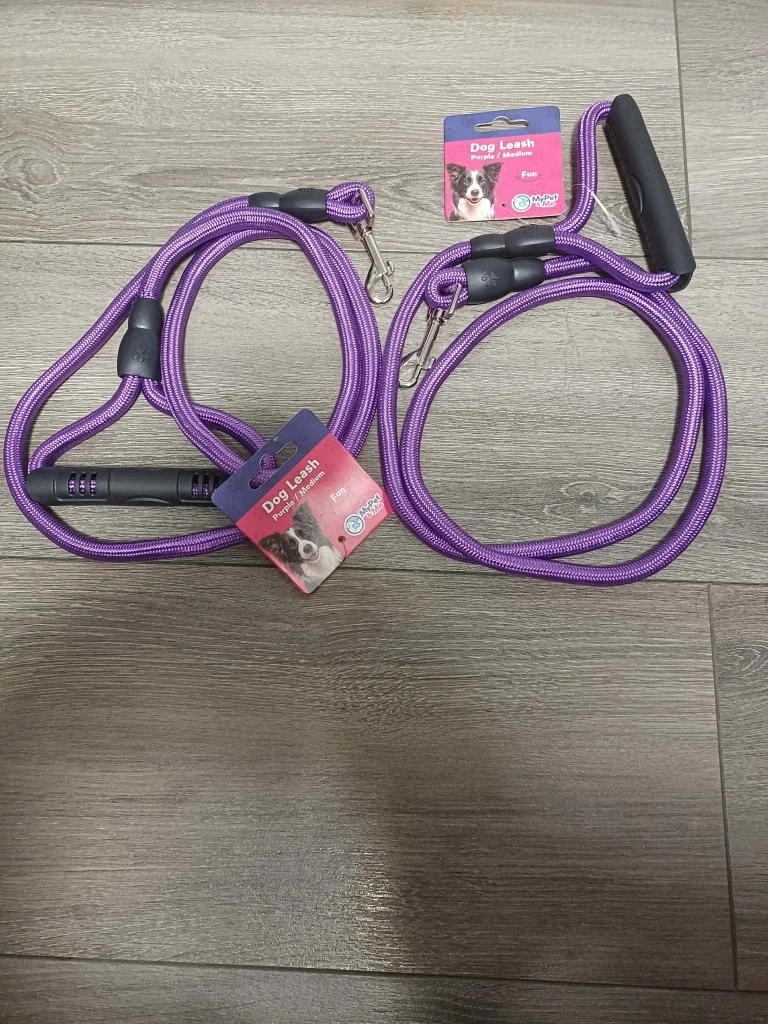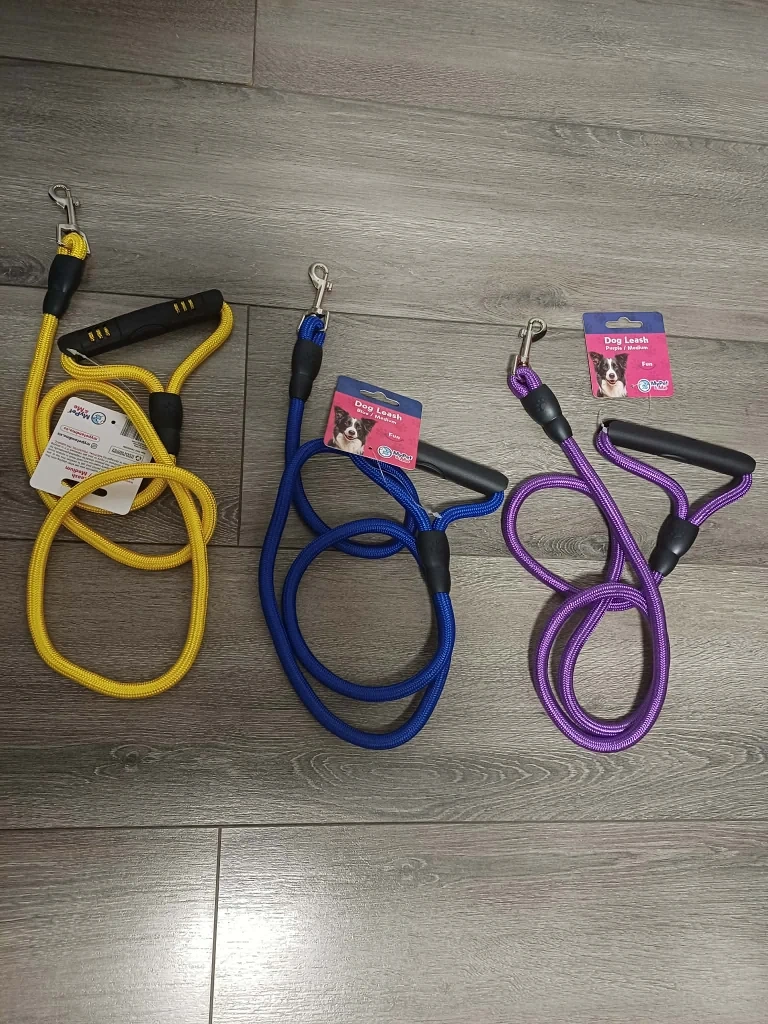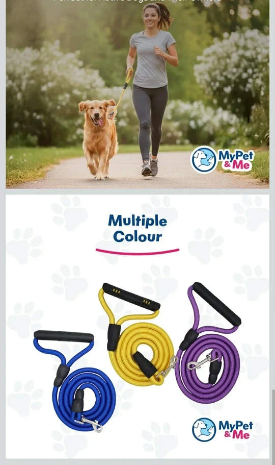 Get your furry friend ready for walks with these MyPet & Me dog leashes! Available in purple, blue, and yellow. They're made with climbing rope, so they're super durable and heavy-duty. The handle is designed to prevent hand burns, and the leash is rust-free. Perfect for medium to large dogs!