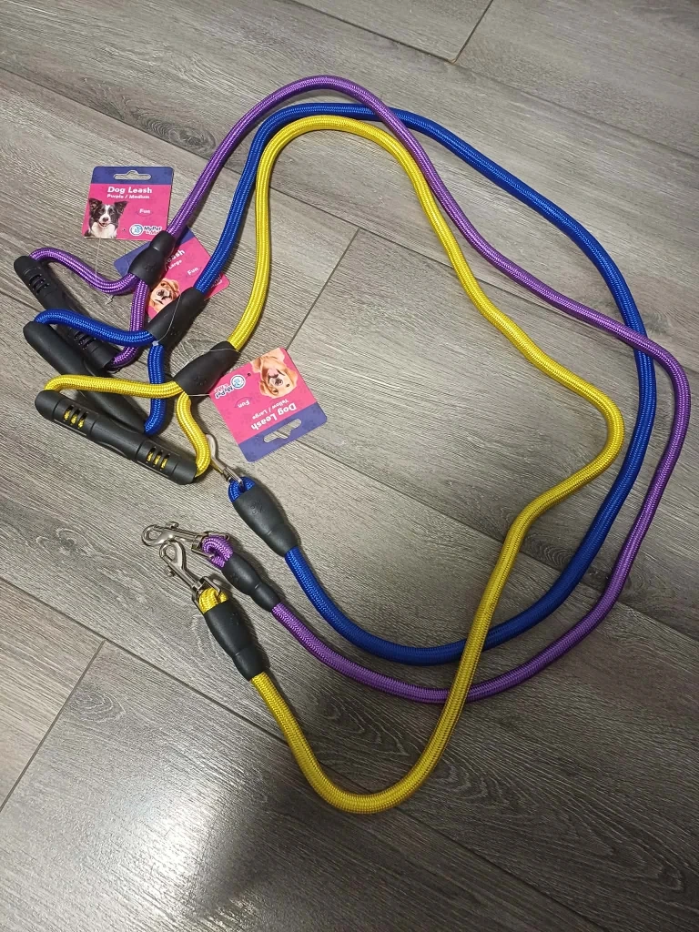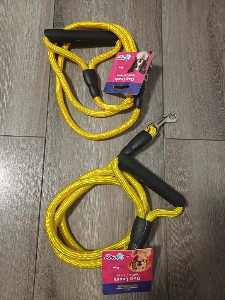 Get your furry friend ready for walks with these MyPet & Me dog leashes! Available in purple, blue, and yellow. They're made with climbing rope, so they're super durable and heavy-duty. The handle is designed to prevent hand burns, and the leash is rust-free. Perfect for medium to large dogs!