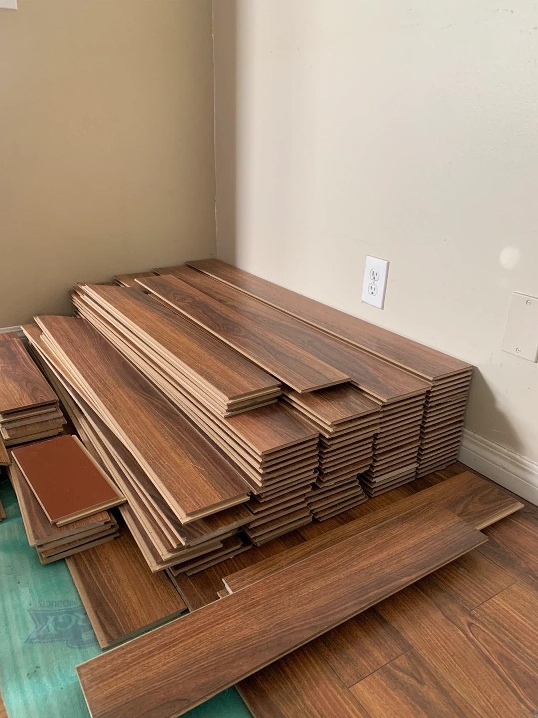 Gently used, interlocking laminate flooring which was removed for renovation.