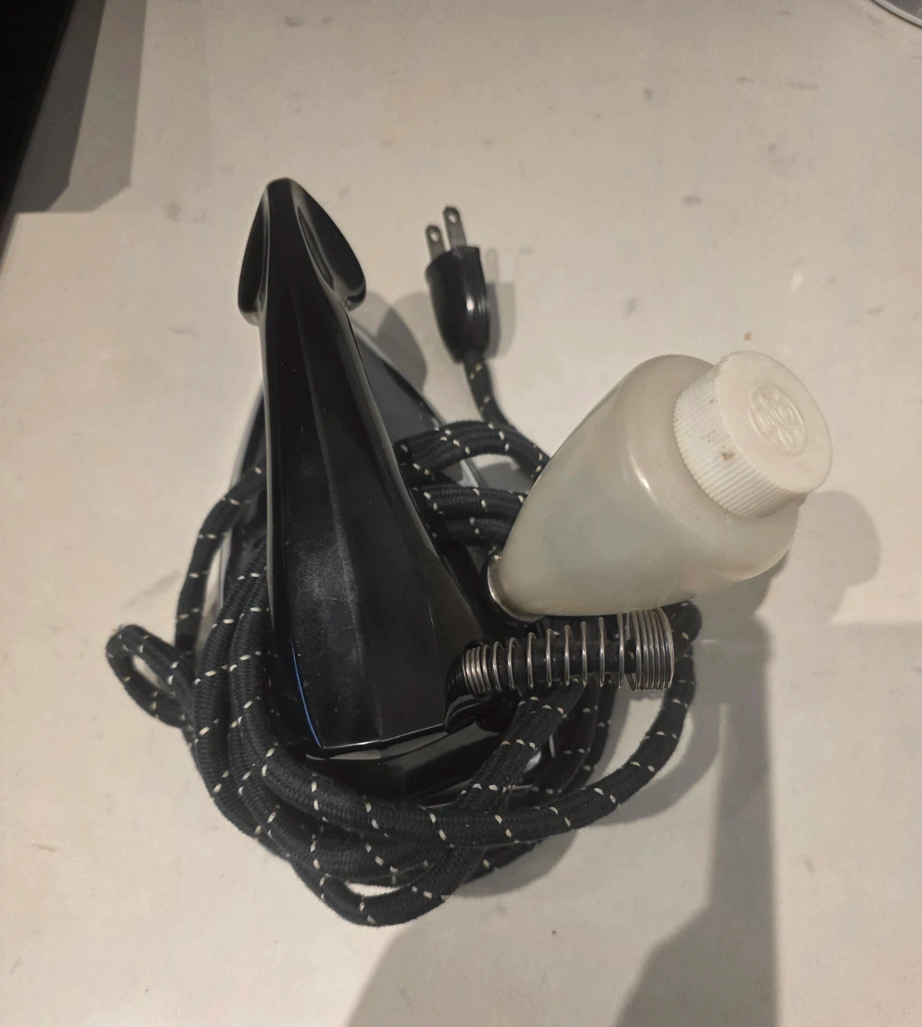 Vintage Black Steam Iron with Water Bottle
