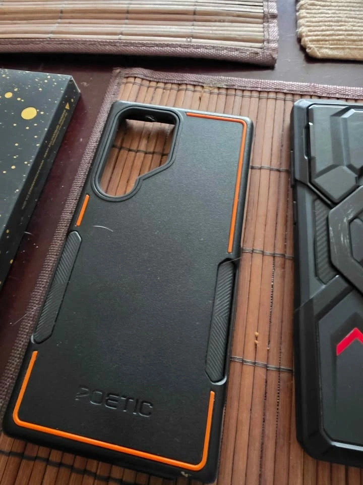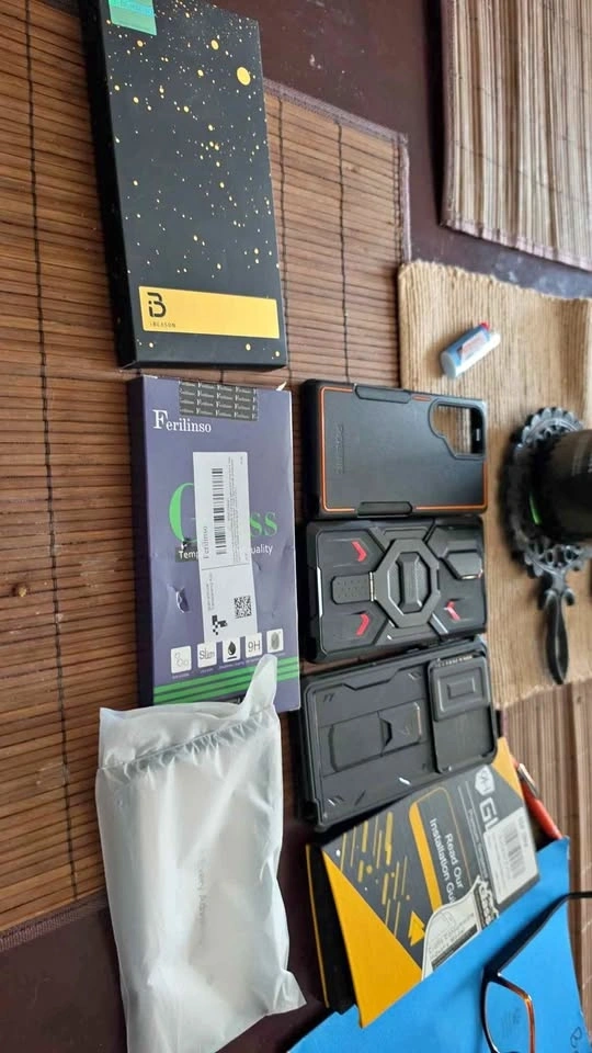 New Samsung Galaxy S24 Ultra accessory set. Includes a Ferilinso 4-pack of tempered glass screen protectors and camera lens protectors. Bundle has three rugged black protective phone cases from brands like Poetic and i-Blason. Screen protectors have 9H hardness and oleophobic coating for fingerprint resistance. One case is used but still great. The one tempered glass kit has 1 cover left and an installation frame. Everything else is new. I upgraded my phone and need to buy a new case.