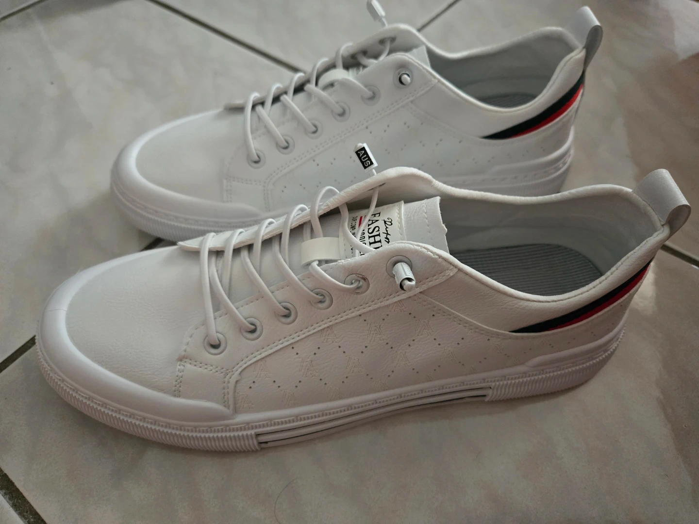 White sneakers. Feature laces. Detail on the sides. Great for a calm walk outside.NEW Sport sneakers 11 size or 30 cm, super light and Comfortable