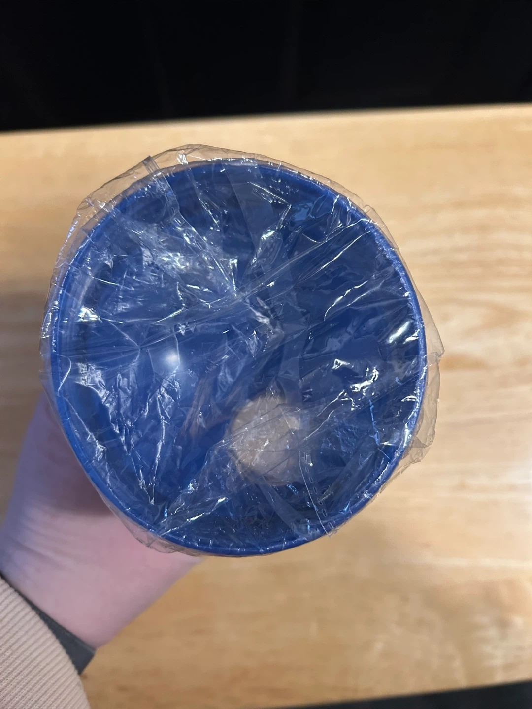 This is a blue shaker bottle, great for mixing protein shakes or other beverages. It's clear and has a secure lid. Perfect for taking your drinks on the go!