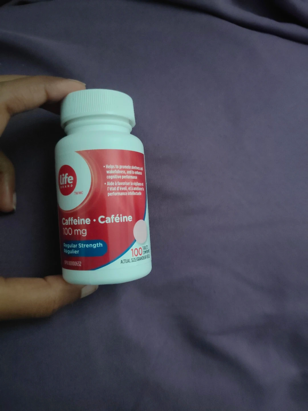 Life Brand Caffeine tablets, 100 mg per serving. These are regular strength for daily use. They help to promote alertness and wakefulness. Expiry date is September 2026.