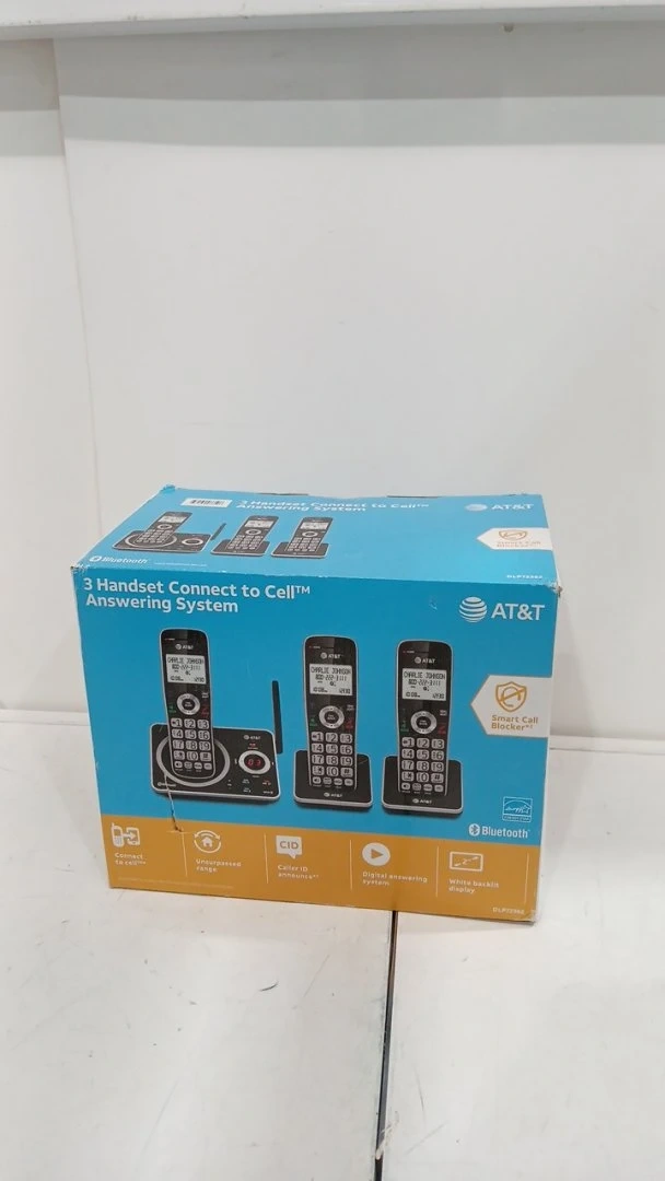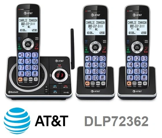 This AT&T DLP72362 DECT 6.0 3-Handset Cordless Phone System is Brand New and ready to connect! This system uses Bluetooth technology to link up to two cell phones, allowing you to make and receive cellular calls on the cordless handsets. The digital answering system features up to 22 minutes of recording time, call screening, and remote access. With a smart call blocker, it pre-screens calls to prevent robocalls from ringing through.