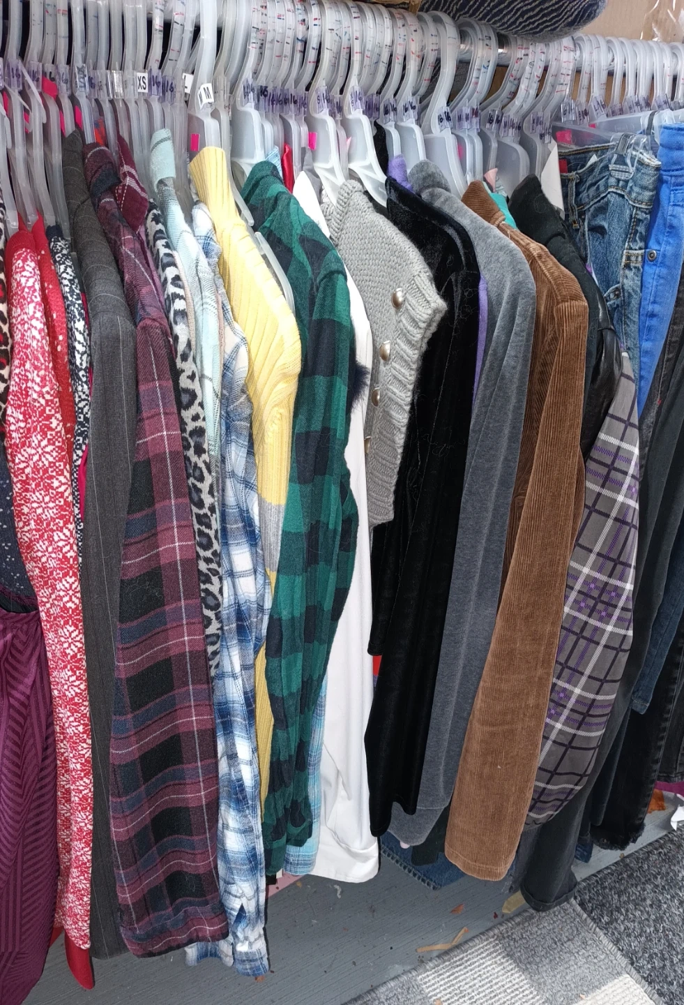 Features various materials like denim, corduroy, and flannel.