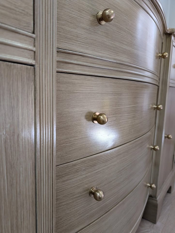 This gorgeous sideboard/dresser has been professionally finished with a Pottey Barn technique, making it a classic piece that would compliment any room. It features six easy gliding drawers, two cupboards each with a shelf providing ample storage, and updated hardware. This is a heavy, solid piece made of all wood construction with dovetail drawers and built-in drawer dust panels.