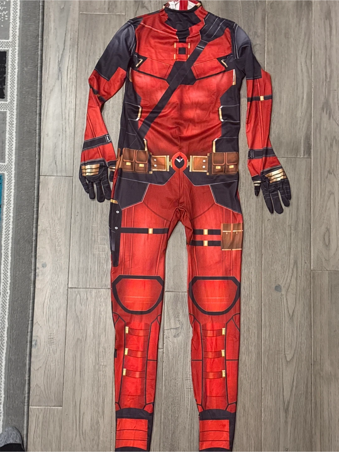 Selling a Deadpool costume in great condition! Perfect for Halloween or cosplay. It's a full-body suit with attached gloves/feet and detailed design. Ready for a new owner!