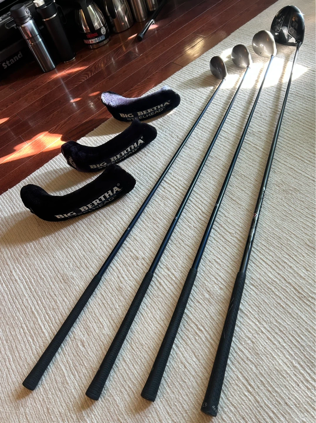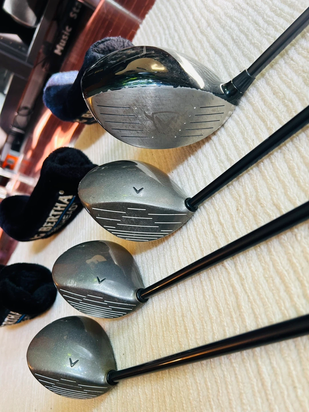 CALLAWAY BIG BERTHA STEELHEAD 1,3,5: (released circa 2002) are popular, classic fairway woods known for compact stainless steel heads, bore-thru hosels for stability, and Variable Thickness face technology for distance. They are often praised for being easy to hit from both the fairway and rough, featuring RCH 99 graphite shafts.(Regular Flex), Comes with Covers