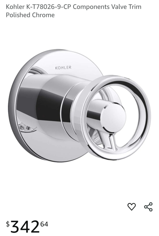 When used with K-737 Series MasterShower diverter valves, handle controls flow to two or three outlets individually (only one outlet at a time)