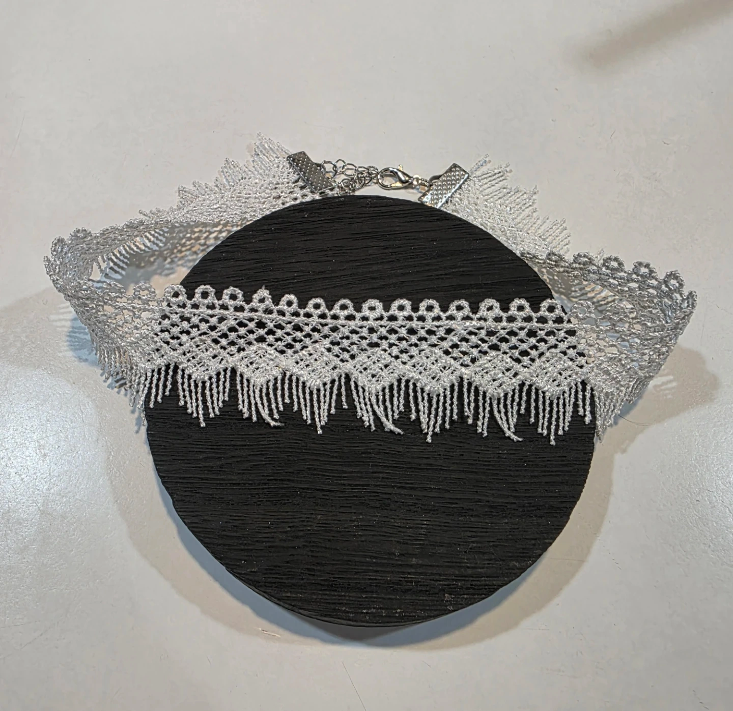 Silver Lace Choker with Fringe