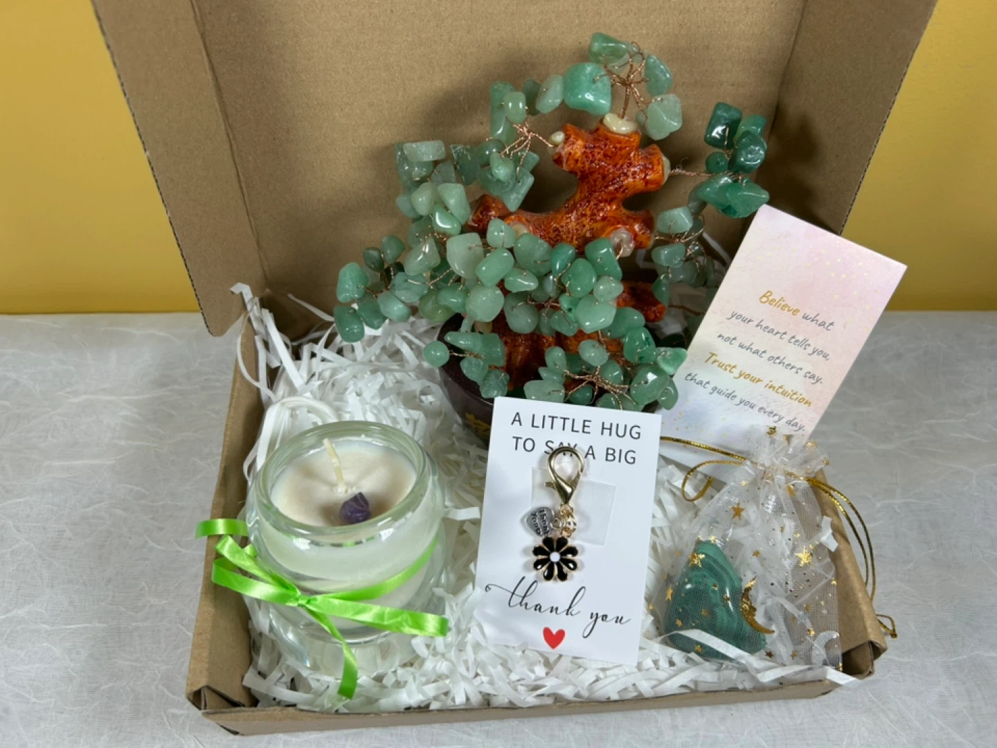 A thoughtfully curated gift box designed to inspire calm, gratitude, and positive energy. This beautiful self-care set blends soothing elements with meaningful crystal energy, making it the perfect gift for birthdays, thank-yous, encouragement, or mindful moments.
