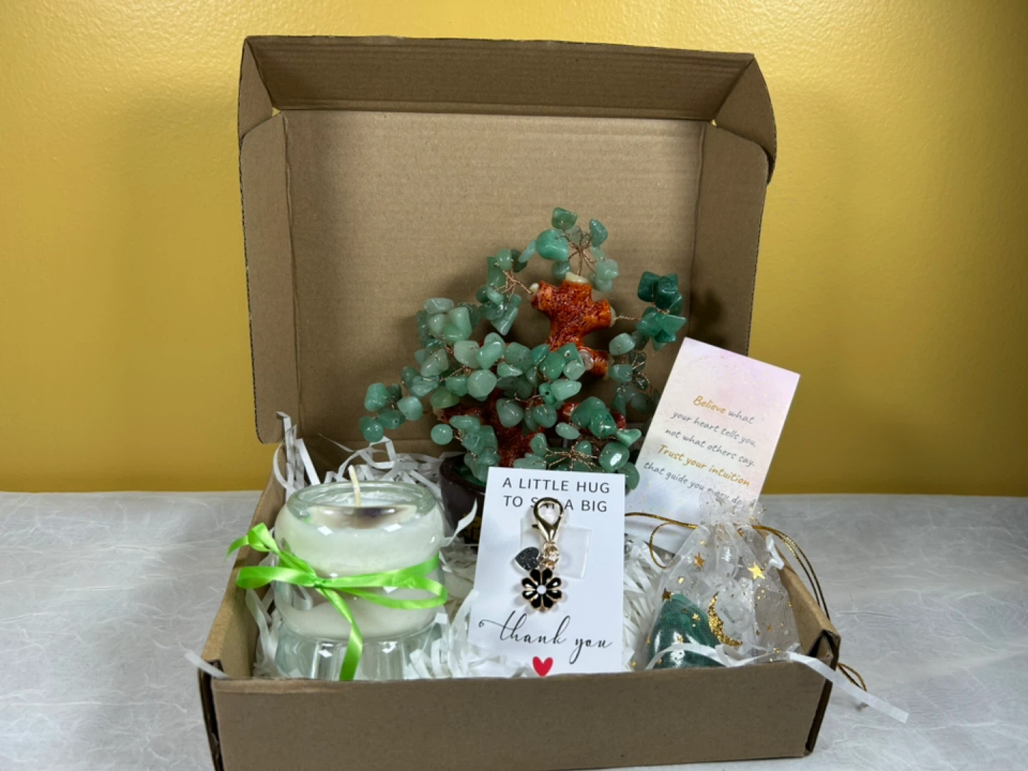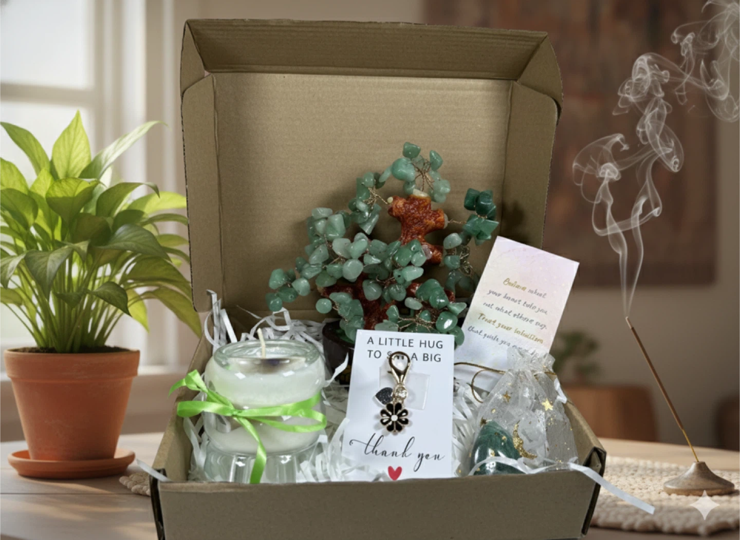 A thoughtfully curated gift box designed to inspire calm, gratitude, and positive energy. This beautiful self-care set blends soothing elements with meaningful crystal energy, making it the perfect gift for birthdays, thank-yous, encouragement, or mindful moments.