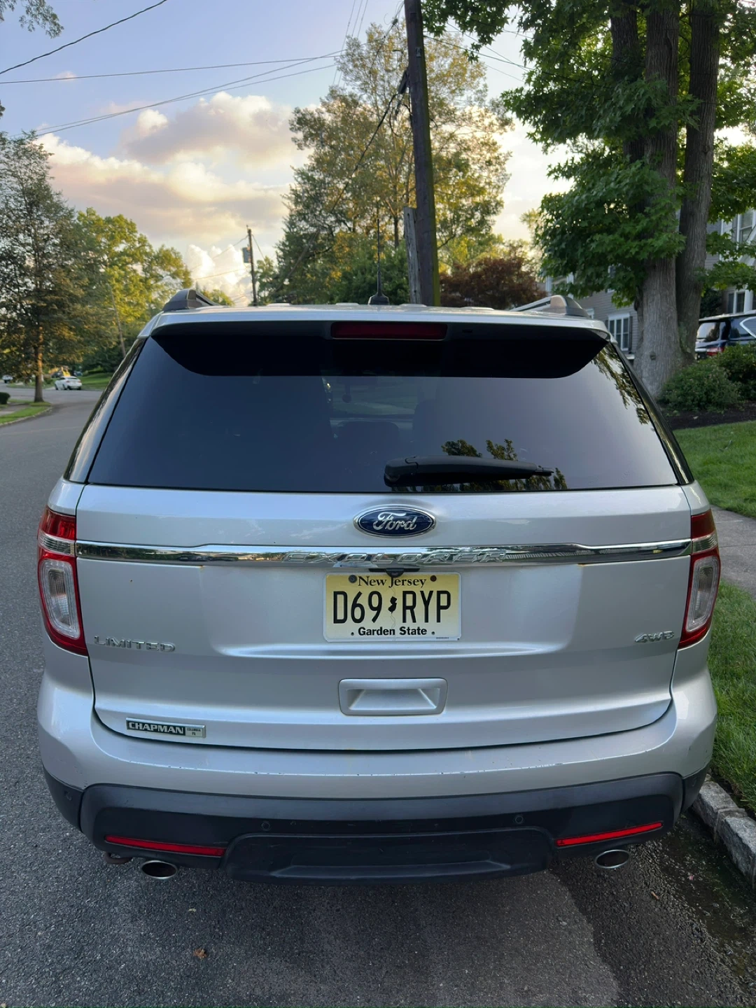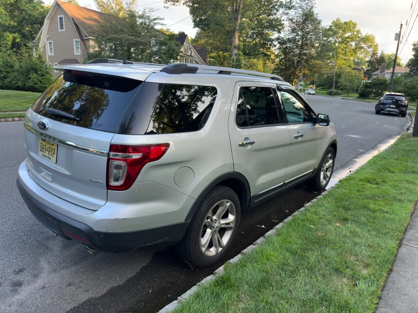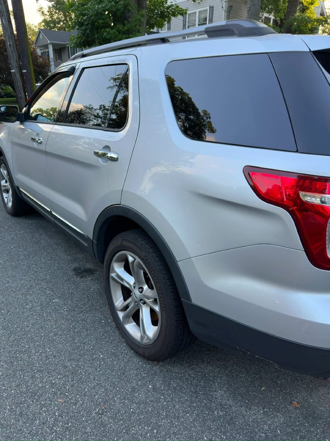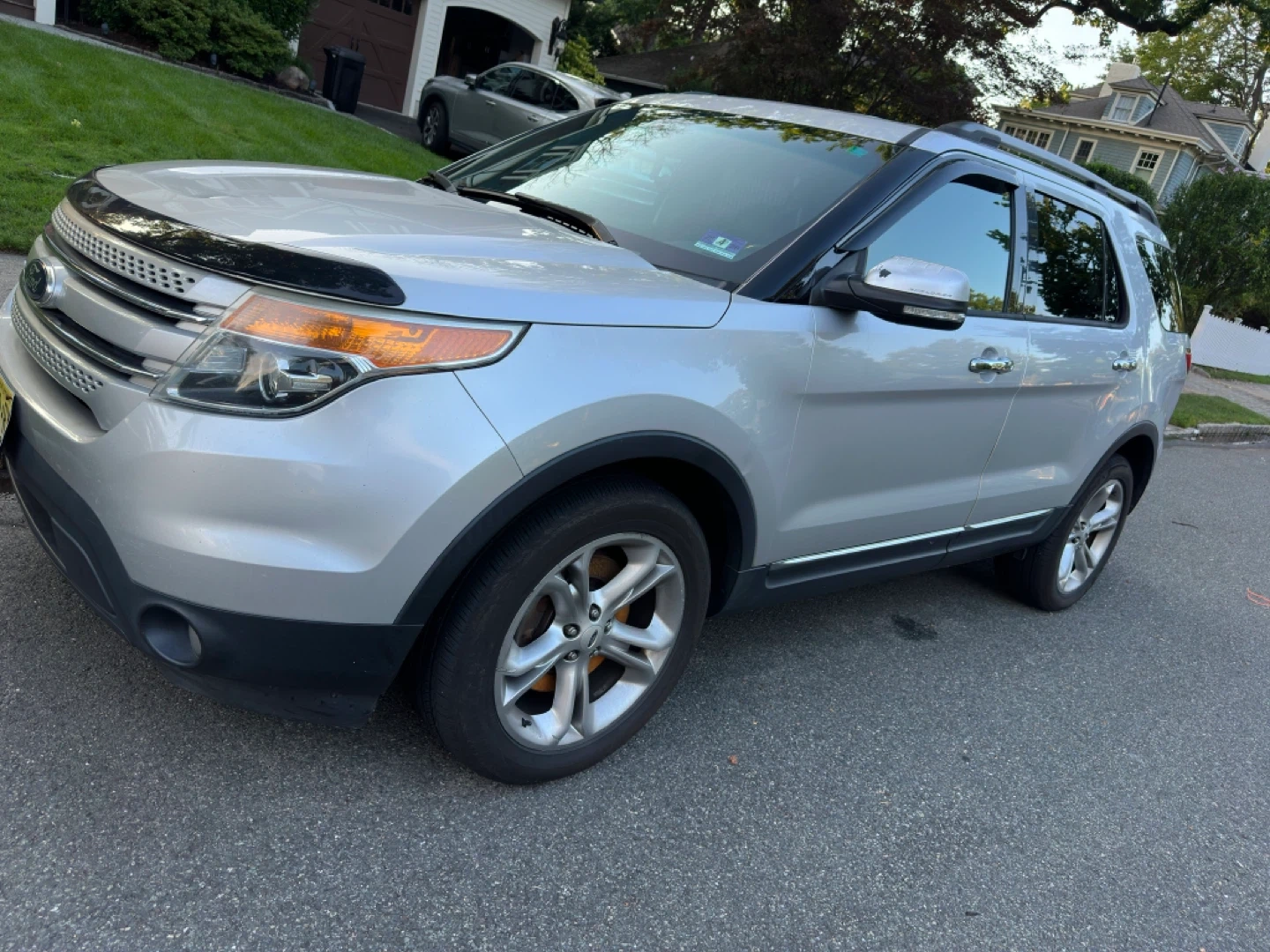 Silver 2014 Ford Explorer Limited SUV. It's a 4-door vehicle with tinted windows. Comes with original Ford floor mats. This SUV is well-suited for families needing ample passenger and cargo space.