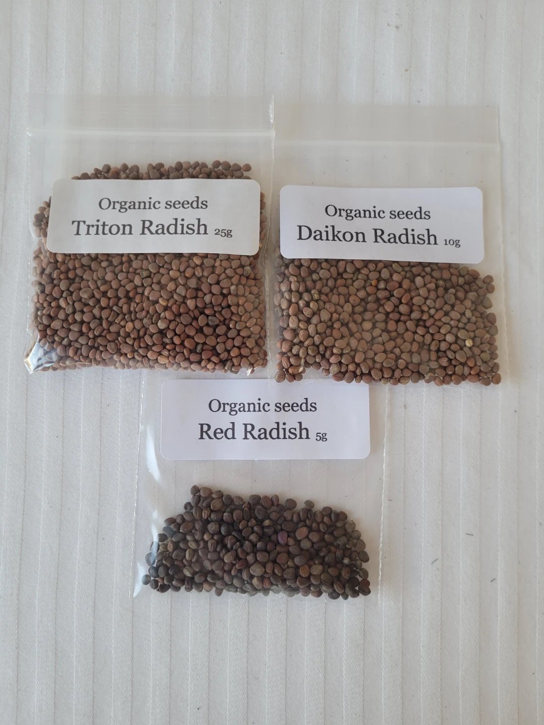 Seeds are $2.00 per package, except for the Basil and Radish 3 packs, which are $5.00 each.