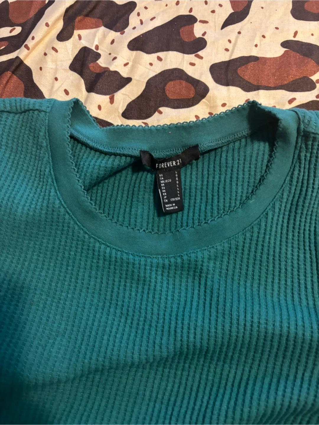 Buy & SellForever 21 Teal Ribbed T-Shirt - Size LForever 21 Teal Ribbed T-Shirt - Size L$2Forever 21 teal t-shirt. Ribbed texture. Size L. Made in Indonesia.ConditionLike newSizeLarge BrandForever 21WHERE TO MEET11 Juliana SquareView MapSELLERDiane vNorthgate442 reviews0 chats·0 favorites·1 viewsSEND CHAT TO SELLERHi Diane v! I’m interested in your listing.Hi Diane v! I’m interested in your listing.Get the Karrot app to chatSign In to chat