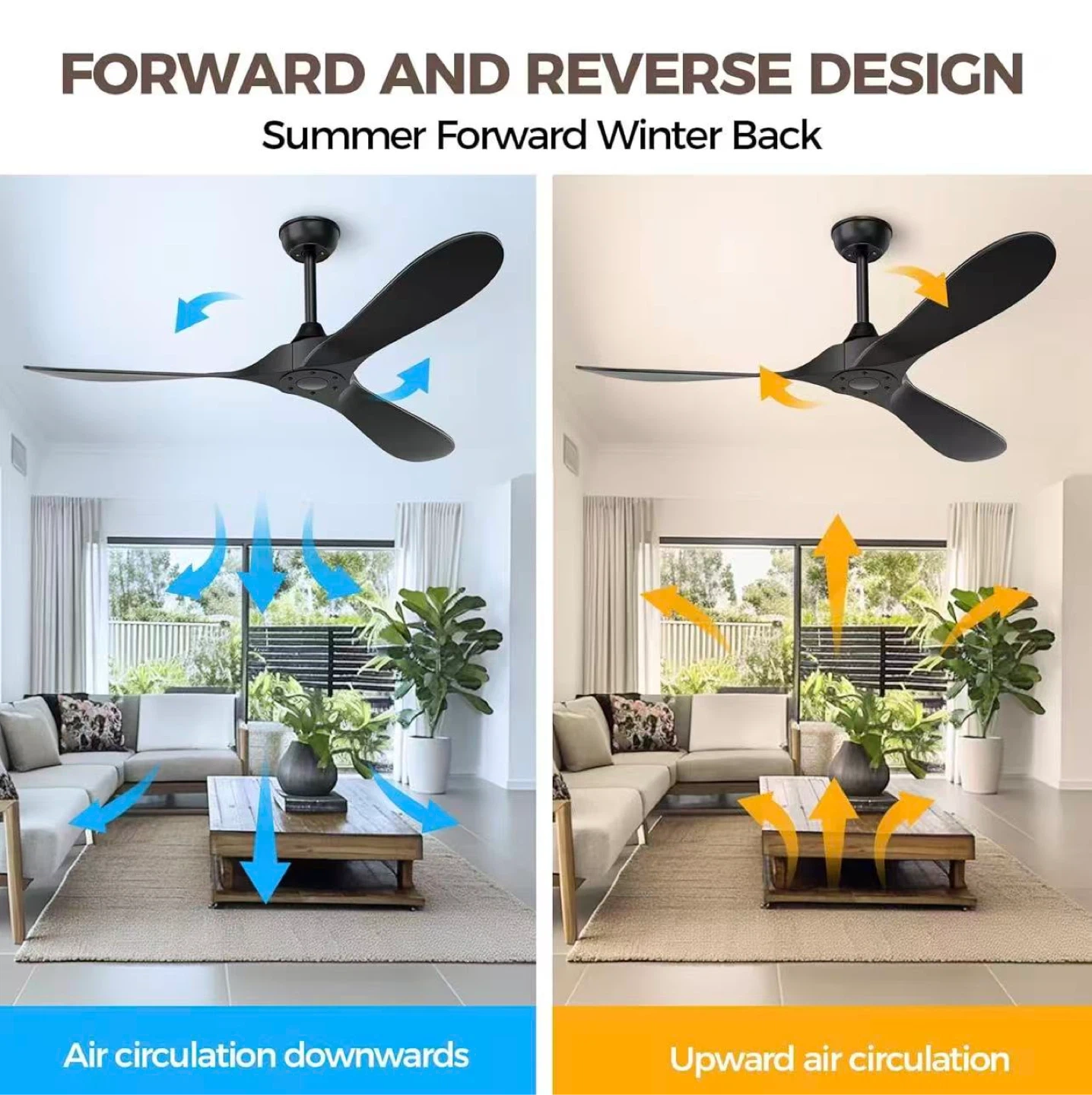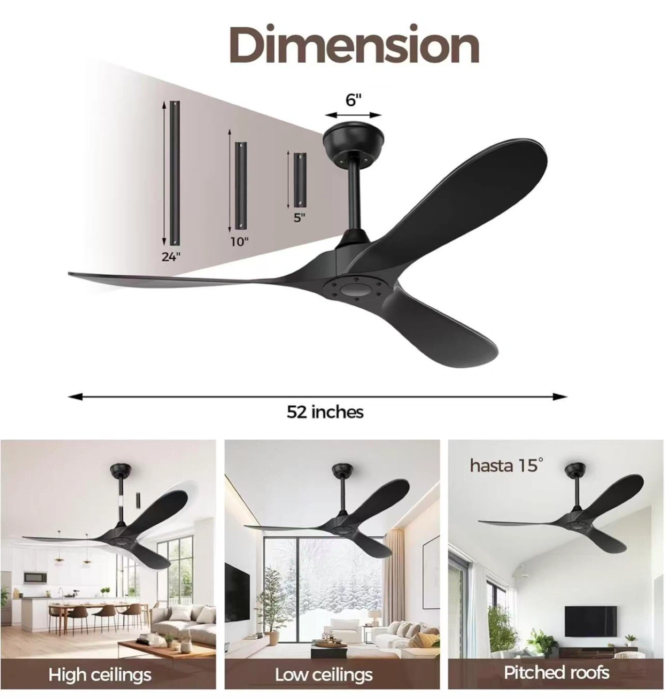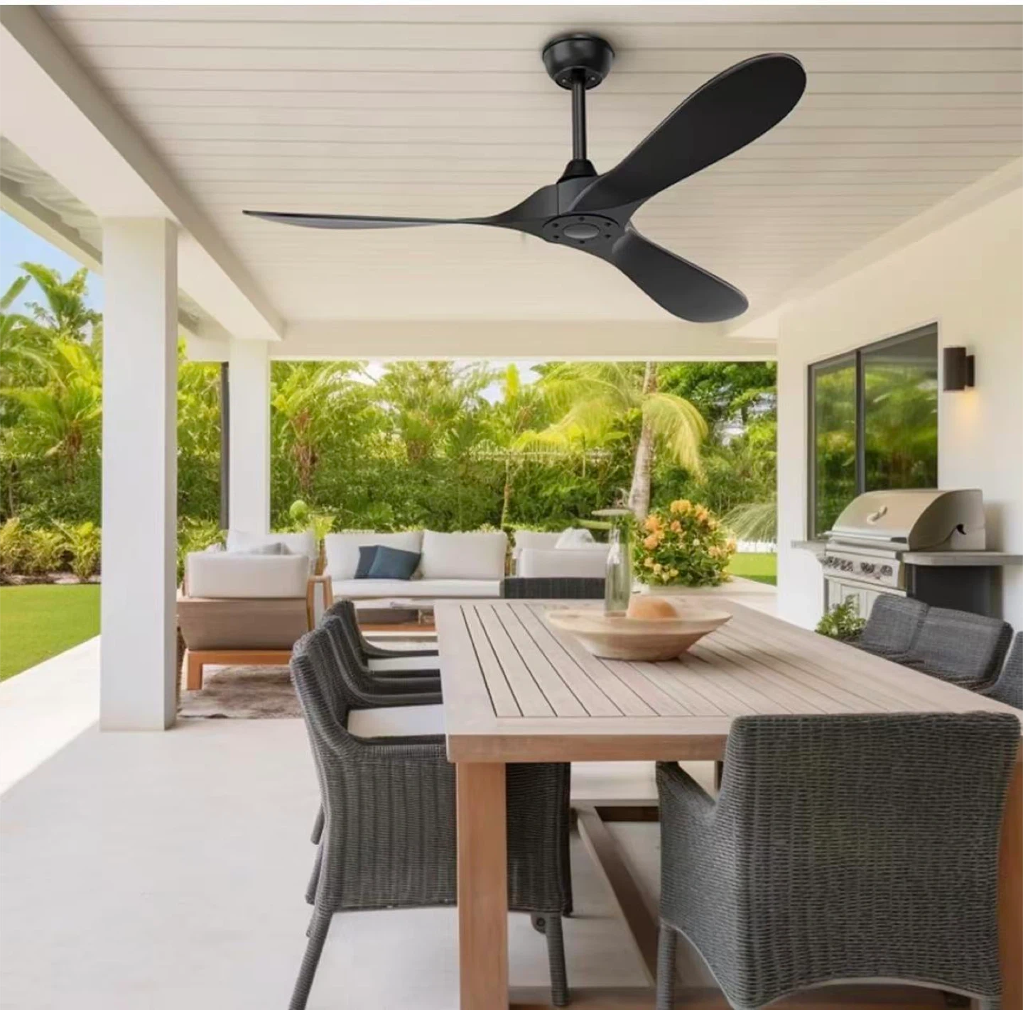 Black Outdoor Ceiling Fan, 52 in Ceiling Fans No Light with Remote Control, 3 Blades, 6 Speed Reversible DC Motor Modern for Patios, Living Room, Bedroom, Porch