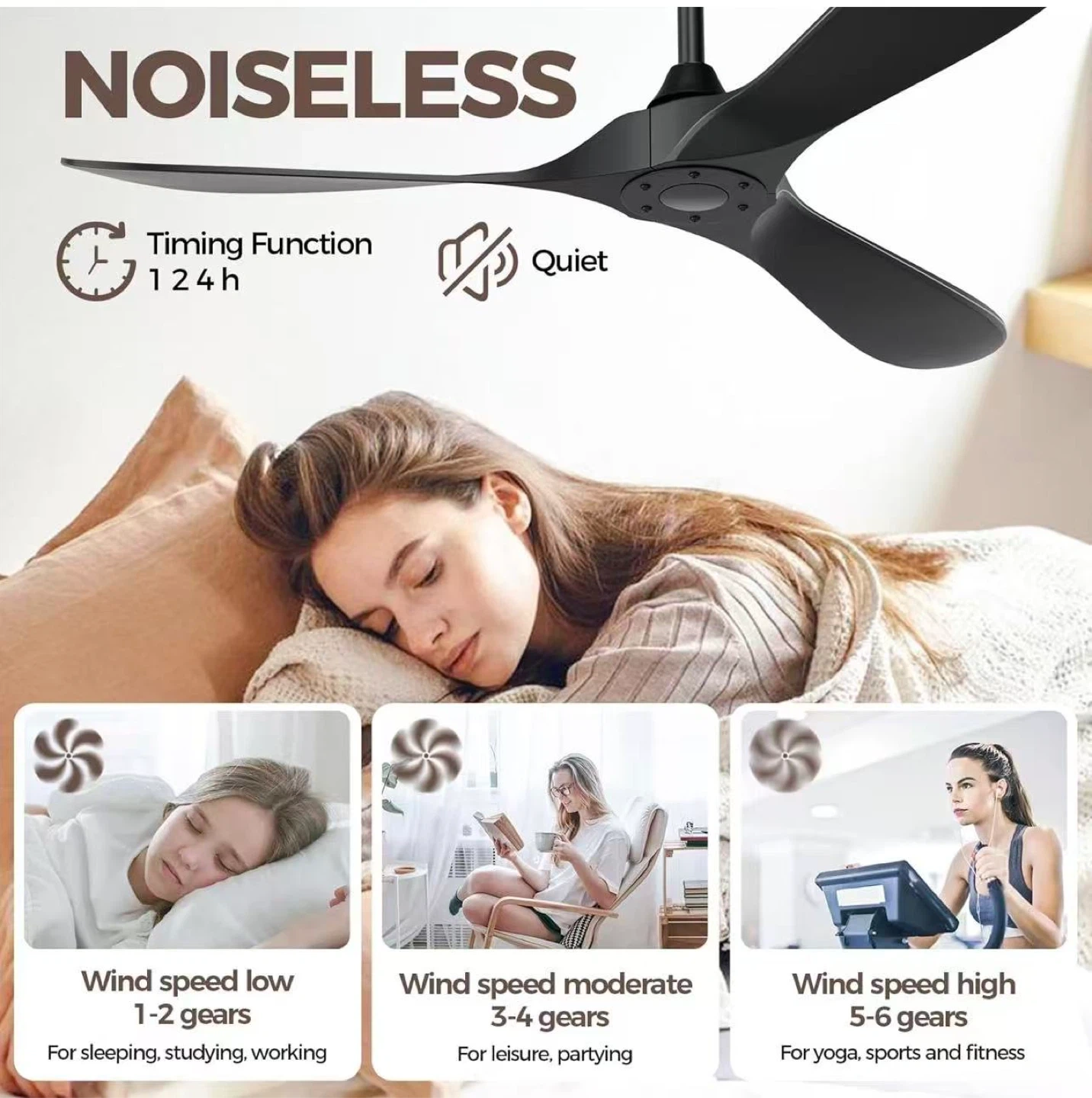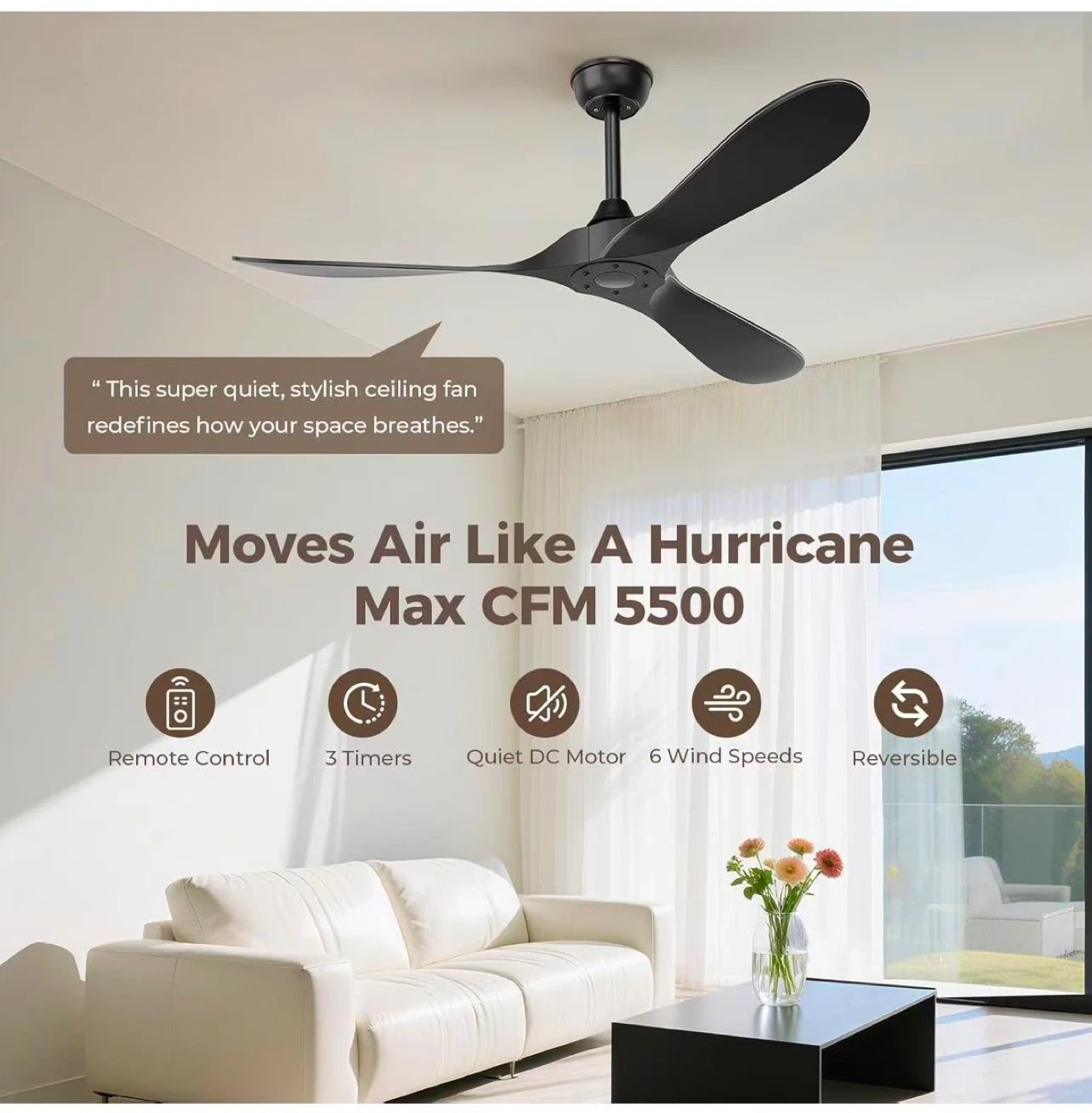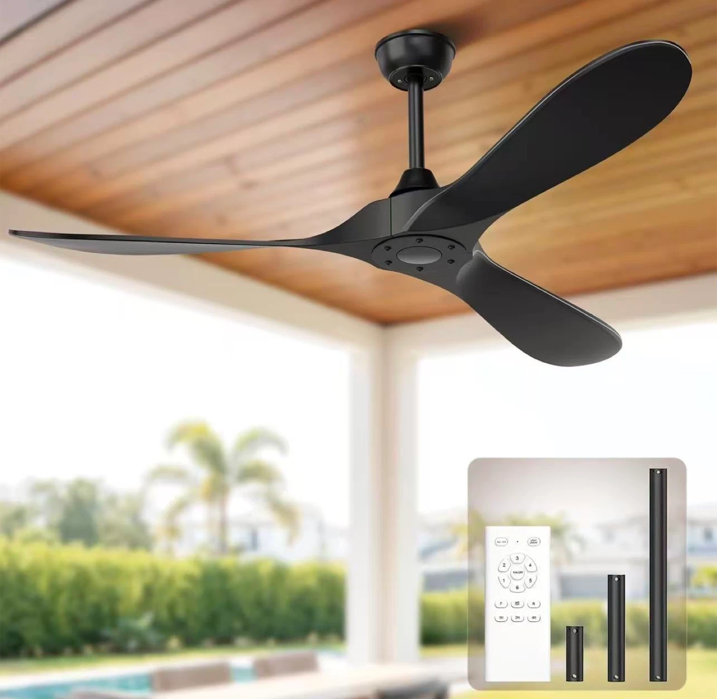 Black Outdoor Ceiling Fan, 52 in Ceiling Fans No Light with Remote Control, 3 Blades, 6 Speed Reversible DC Motor Modern for Patios, Living Room, Bedroom, Porch