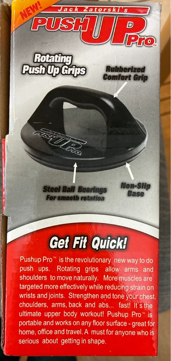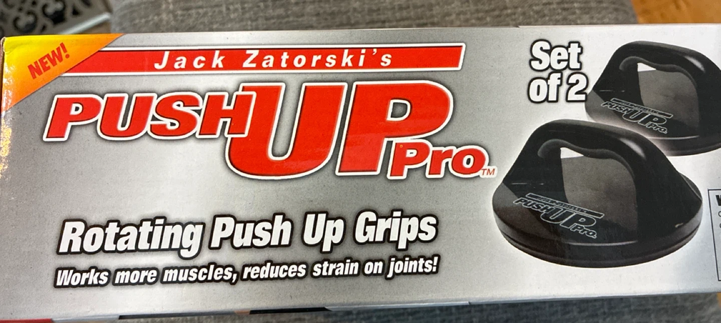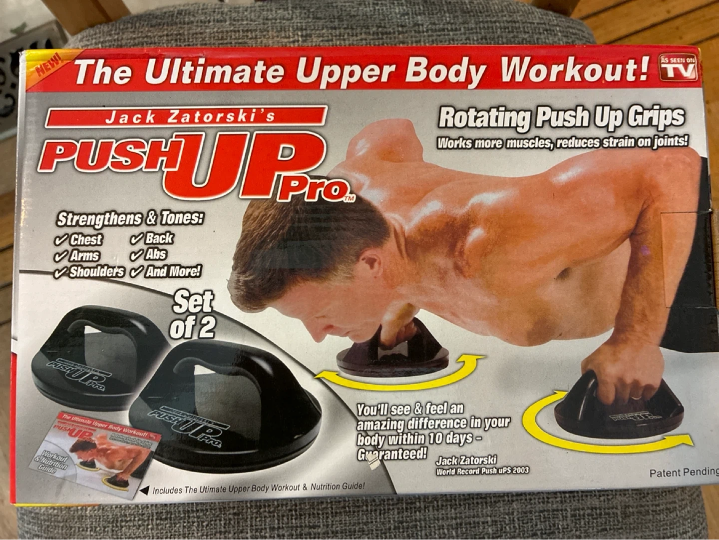 Get fit with these Push Up Pro rotating push up grips! This set of 2 helps strengthen and tone your chest, back, arms, and shoulders. They work more muscles and reduce strain on your joints. Includes The Ultimate Upper Body Workout & Nutrition Guide!