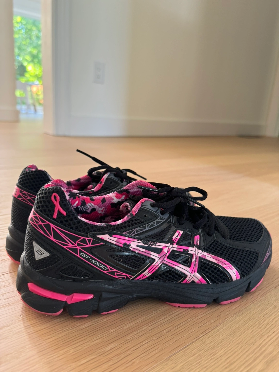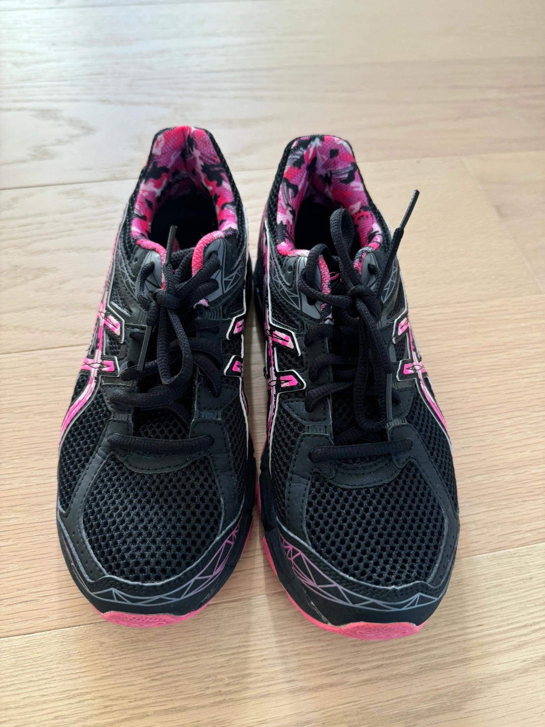 Like new ASICS running shoes with a pink and black camo interior. Only wore indoor for a couple times. Size 6.5 US.