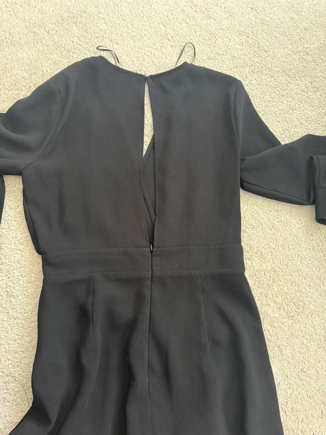 Selling a Zara black long sleeve dress! It features a V-neck and a stylish design with silver accents around the waist. Perfect for a night out or a special occasion