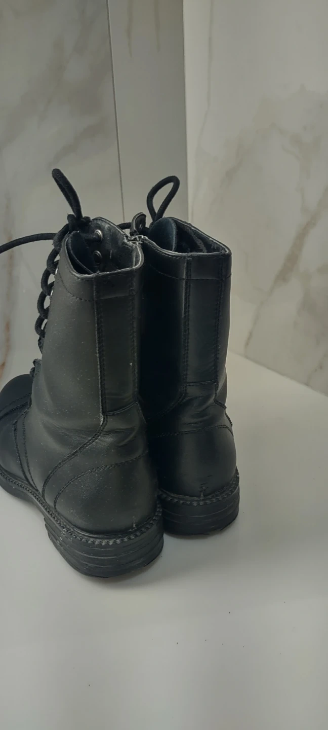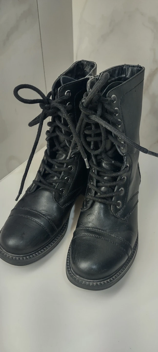 Selling a pair of black lace-up combat boots. They're in good condition and ready for a new adventure!