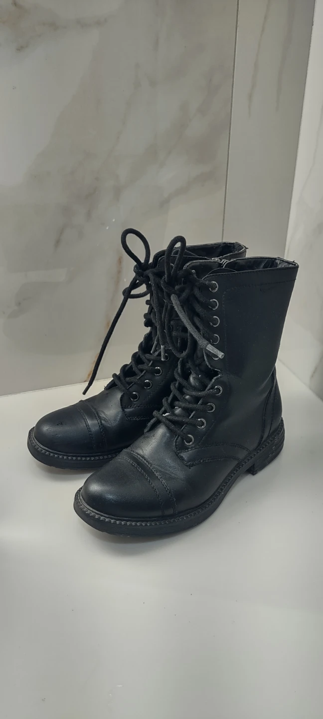 Selling a pair of black lace-up combat boots. They're in good condition and ready for a new adventure!