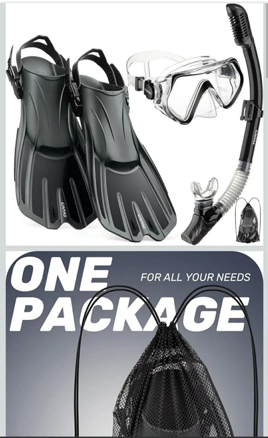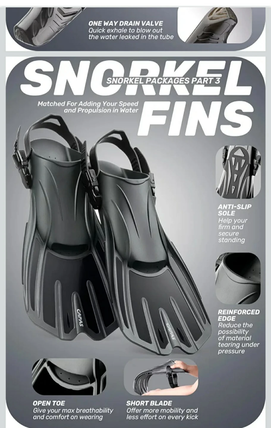 CAPAS Snorkel Set - Fins, Mask, Snorkel - New