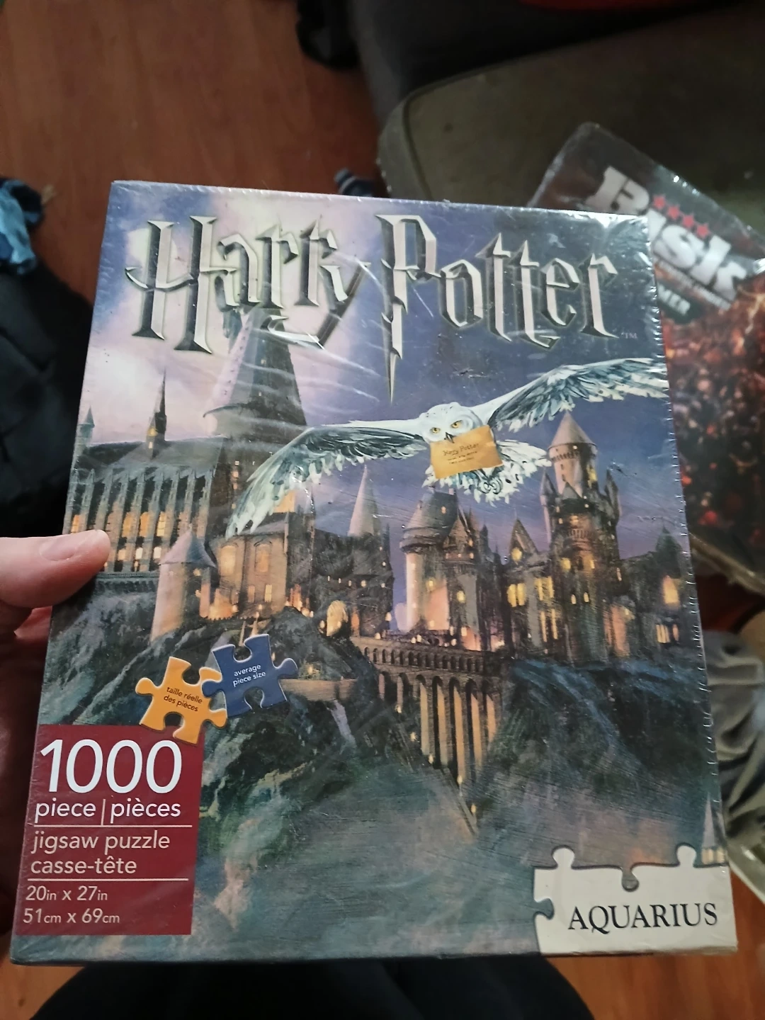 This Aquarius Harry Potter jigsaw puzzle has 1000 pieces. The finished puzzle measures 20in x 27in or 51cm x 69cm. It's a fun activity for any Harry Potter fan!