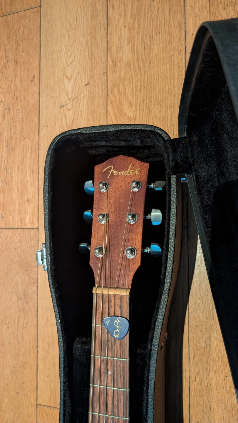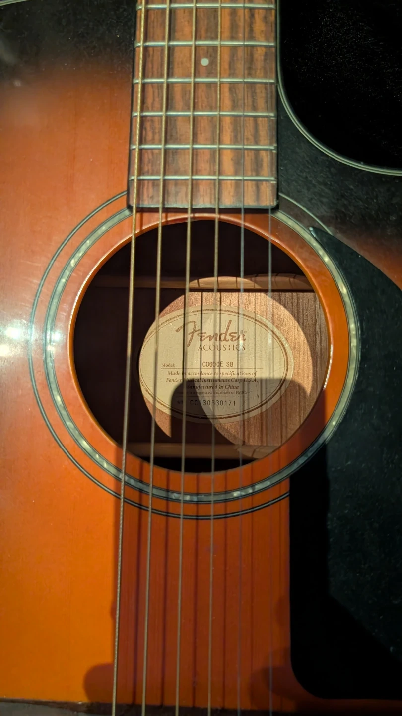 Selling a Fender CD60GE SB acoustic-electric guitar. It's in good condition and comes with a case. This guitar is perfect for beginners or experienced players looking for a reliable instrument. The sunburst finish looks great, and it's ready to play!