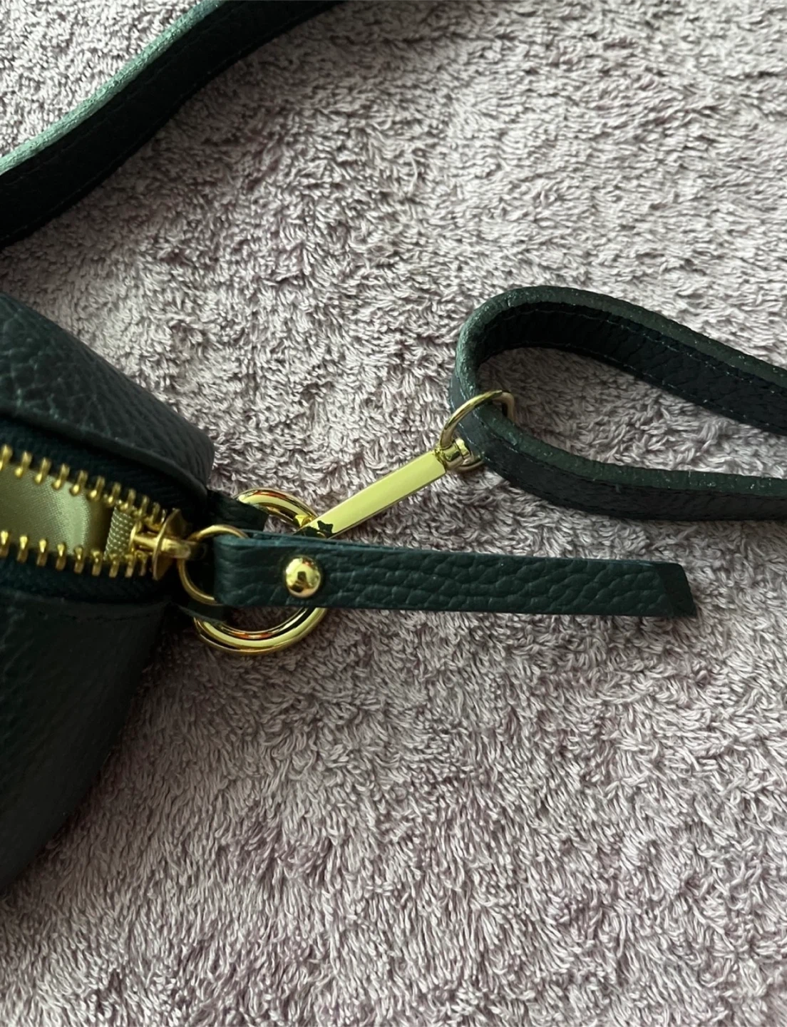 This dark blue crossbody bag is made of genuine leather and was crafted in Italy. It has a zippered closure and a removable strap. It's a great size for everyday essentials. I bought it impulsively but don’t need it. Never used.