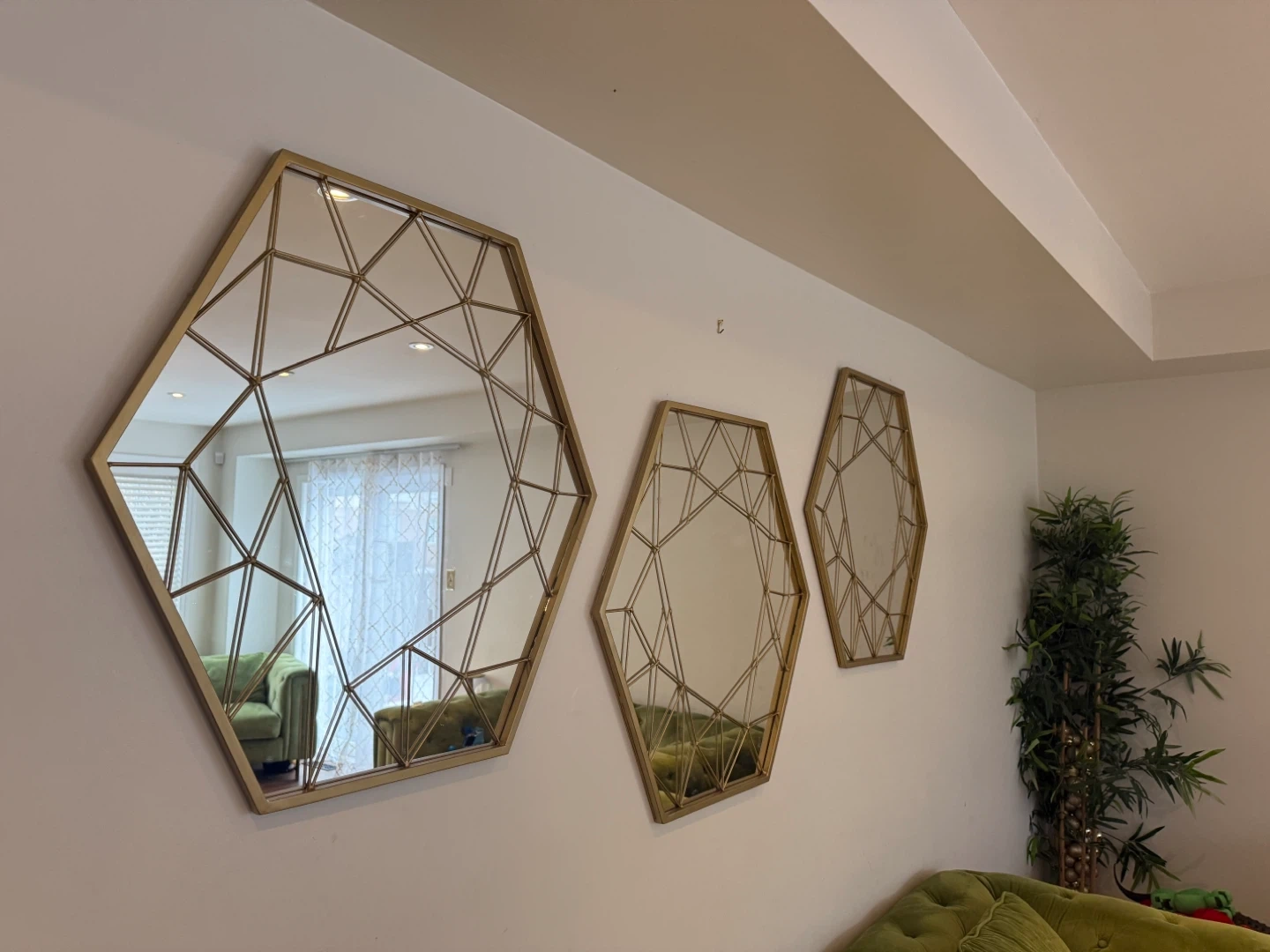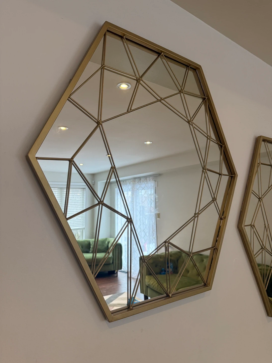 Buy & SellSet of 3 Hexagonal Geometric Wall MirrorsSet of 3 Hexagonal Geometric Wall Mirrors$153This set includes three hexagonal wall mirrors with a gold geometric frame. They're perfect for adding a touch of modern style to any room.ConditionLike newWHERE TO MEETWhitbyView MapSELLERverifiedNicoleBrooklin600 reviews0 chats·2 favorites·35 viewsSEND CHAT TO SELLERHi Nicole! I’m interested in your listing.Hi Nicole! I’m interested in your listing.Get the Karrot app to chatSign In to chat