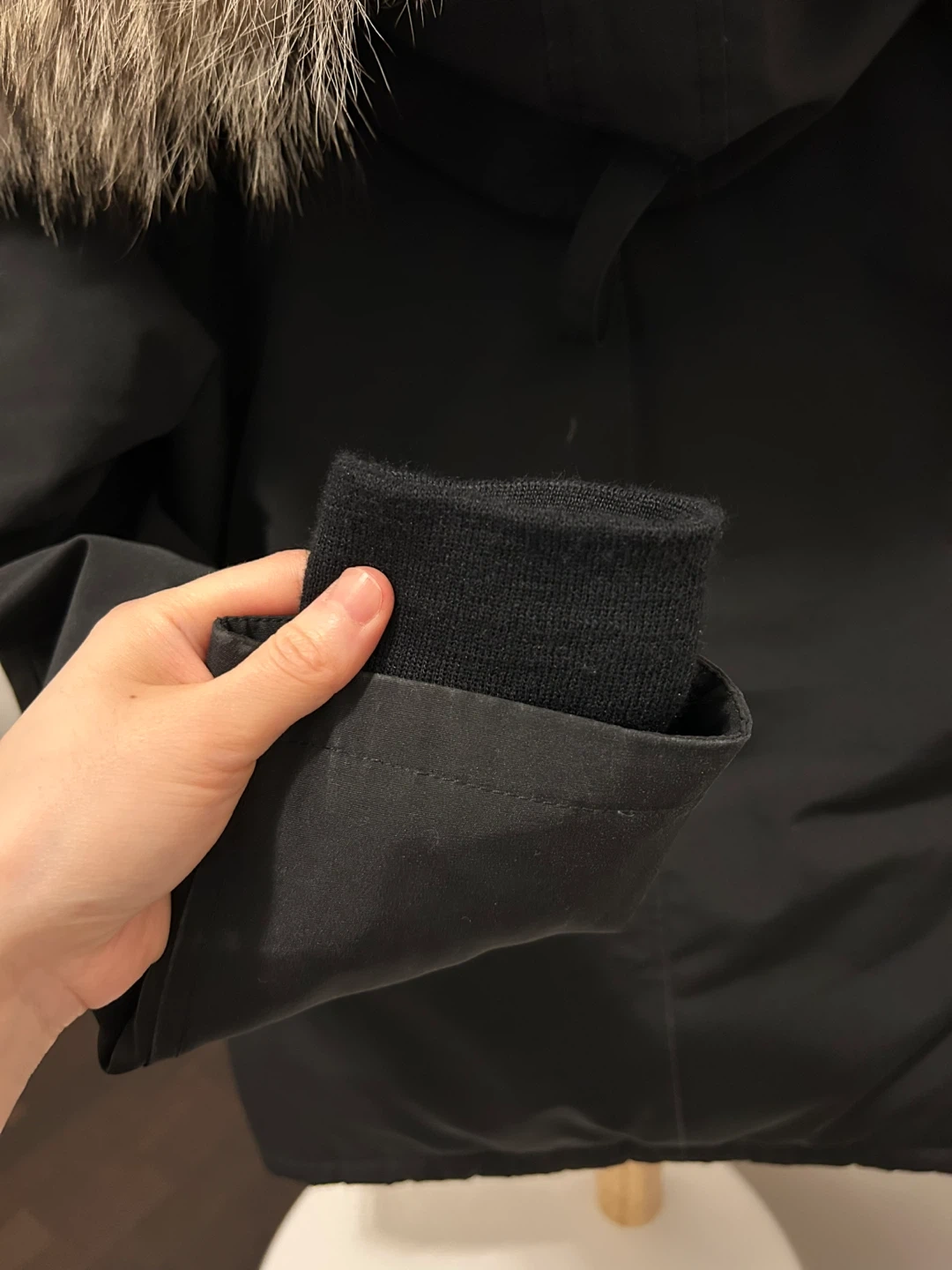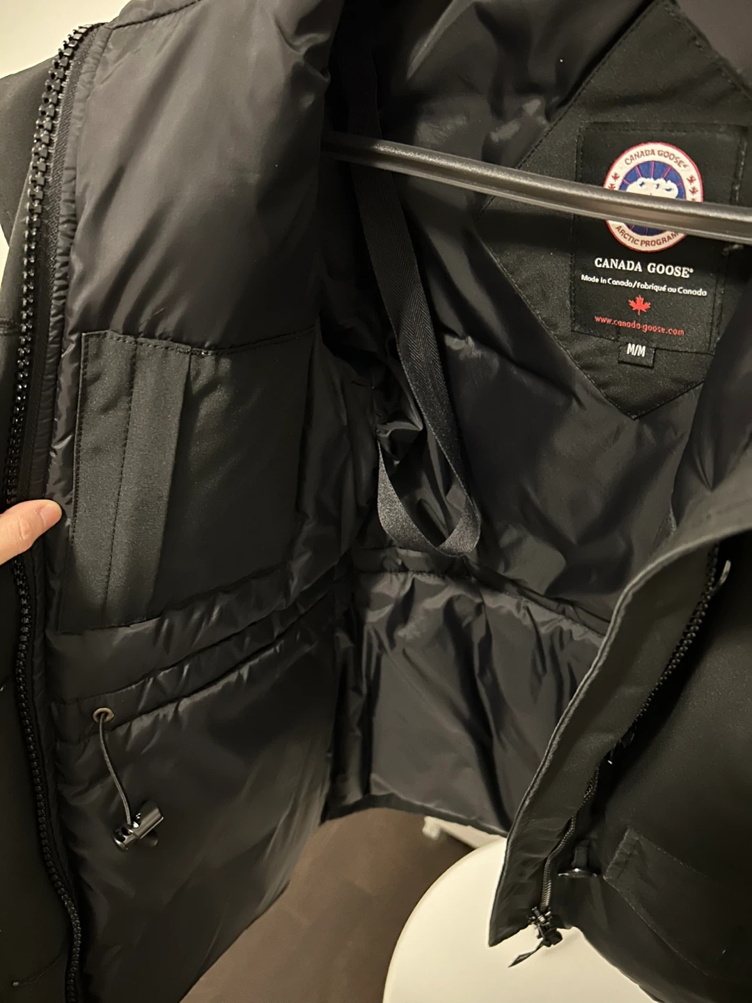 Canada Goose Montebello parka in black. Features a fur-lined hood and multiple pockets. Size M in great condition. Only worn for 1 season.