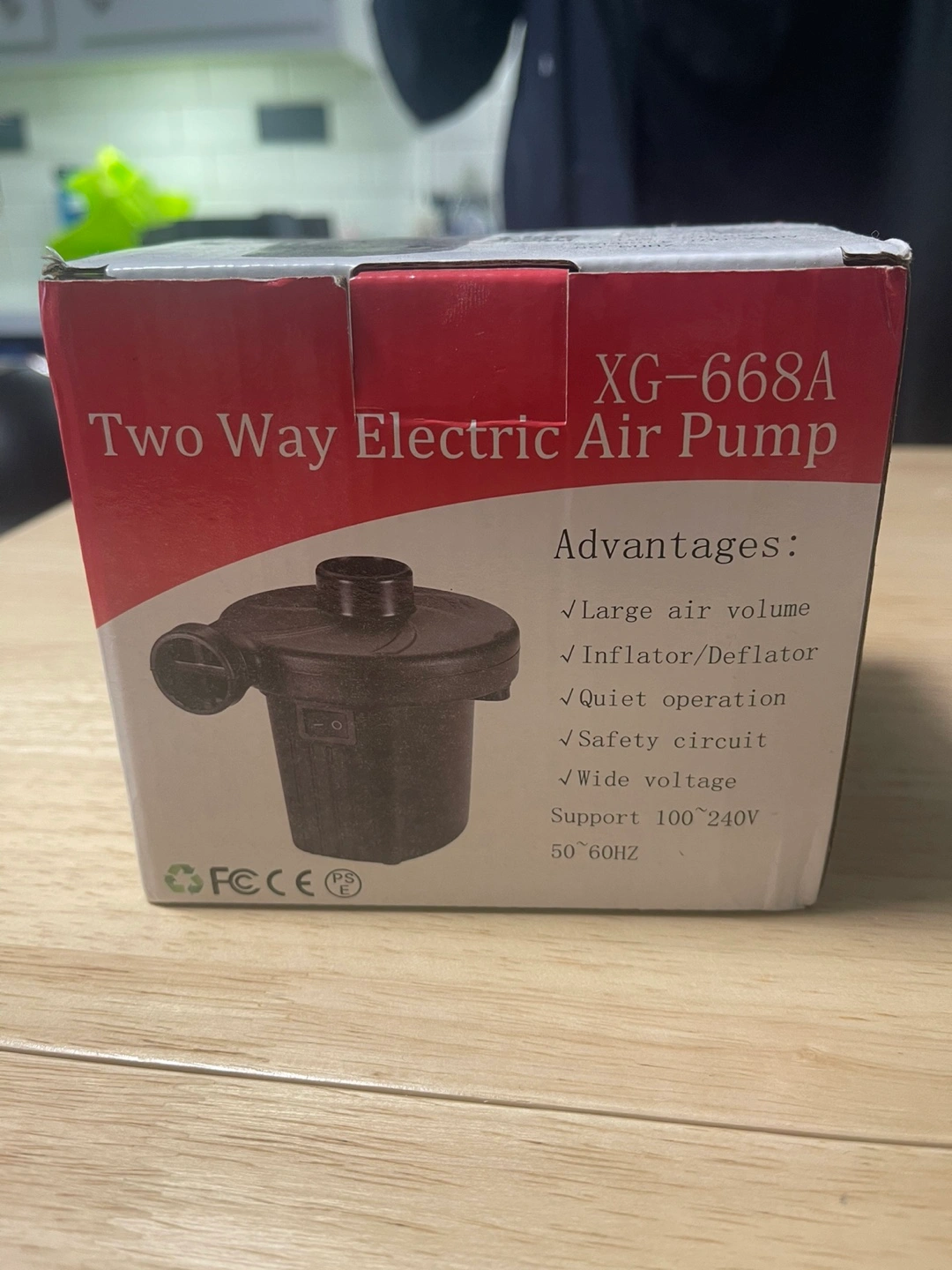 Buy & SellTwo-Way Electric Air Pump XG-668ATwo-Way Electric Air Pump XG-668A$10Electric air pump inflates and deflates. Quiet operation. Includes three nozzles. Large air volume. Safety circuit. Wide voltage support.WHERE TO MEETCheck LocationView MapSELLERverifiedJessey LSouth London650 reviews1 chats·0 favorites·23 viewsSEND CHAT TO SELLERHi Jessey L! I’m interested in your listing.Hi Jessey L! I’m interested in your listing.Get the Karrot app to chatSign In to chat