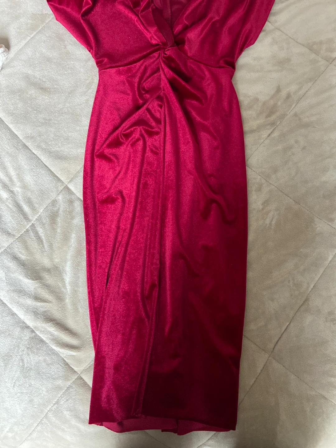 Selling a beautiful red velvet dress from Suzy Shier! It's in great condition and perfect for a special occasion or a night out. The fabric is soft and luxurious, and the colour is a rich, vibrant red. It features a flattering design that will make you feel confident and stylish